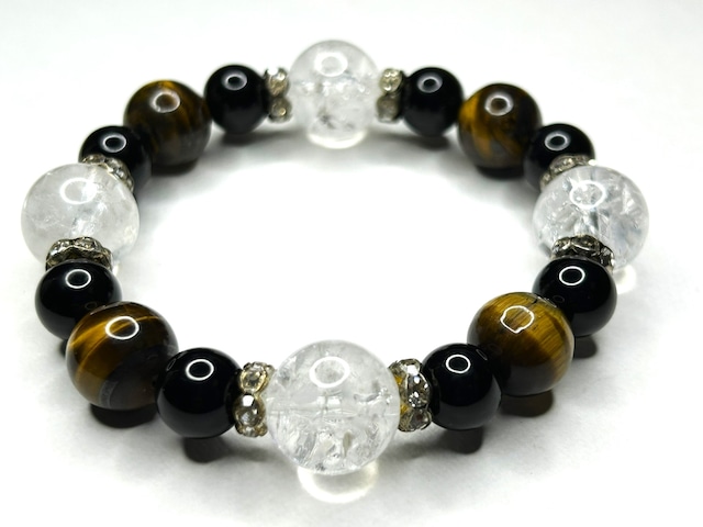 クラック水晶×タイガーアイ×ブラックオニキス ブレスレット A(平ロンデル)
