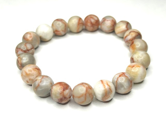 白い地の色に赤い網目模様のレッドネットストーンです。 黒い直線的な線の物はゼブラジャスパーなどの名前で呼ばれ国内流通でもよく見かけますが、 赤い線の物は国内ではあまり見かけないので10mm珠でブレスレットをご用意しました。 10mmの大粒サイズは手元にしっかりと存在感を与えながら、落ち着いた赤色が派手になりすぎず、上品な印象を保ってくれます。 ひと粒ひと粒に異なる模様が入り、自然が描いたアートのような表情を楽しめるのが魅力。 カジュアルにもきれいめにも合わせやすく、男女問わず身につけやすい万能な一本です。 在庫からランダム配送となります。 ※ご希望がございましたらお問い合わせ・備考欄へご記入ください。それを考慮しての発送をさせていただきます。(100%ご希望に添えるとは限りませんのでご了承ください。) 【内容】 レッドネットストーン 約10mm 天然石 【内周】 約16.0cm(ゴム伸縮) ※リサイズ可能です。お問い合わせください。 −−−−−−−−−−−−−−−−−−−−−−−−−−−−−−−−−−−−−−−−−− ※天然石は自然由来の物ですので、キズ、ひびや不純物が含まれる場合がございます。 ※記載されているサイズはおおよそのものであり、測り方などで誤差が出る場合がございます。 ※できる限り現物に近い色合いで撮影するよう心がけておりますが、光源、モニターの画面により若干異なる場合がございます。 ※販売の対象となるのは商品名に記載されている現品のみとし、撮影レイアウトに使用されている物品等は含まれません。