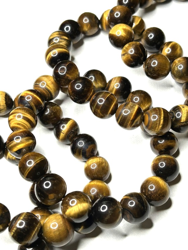 黄金色の輝きが力強く手元を彩る、イエロータイガーアイのラウンドブレスレットです。 光の角度によって流れるように現れるキャッツアイ効果(シャトヤンシー)が、まるで虎の眼のような鋭い光を放ち、存在感のある一本に仕上がっています。 タイガーアイ(虎目石)は、古来より「洞察力」「決断力」「行動力」を象徴する石として親しまれ、仕事運・金運のお守りとしても人気の高い天然石です。 12mm珠ならではの迫力と重厚感がありながら、黄金色の縞模様が上品に映えるため、男女問わず身につけやすいデザインです。 一粒一粒の模様が異なるため、世界にひとつだけの表情を楽しめます。 【内容】 イエロータイガーアイ 12mm 天然石 【内周】 約15.5cm(ゴム伸縮) −−−−−−−−−−−−−−−−−−−−−−−−−−−−−−−−−−−−−−−−−− ※天然石は自然由来の物ですので、キズ、ひびや不純物が含まれる場合がございます。 ※記載されているサイズはおおよそのものであり、測り方などで誤差が出る場合がございます。 ※できる限り現物に近い色合いで撮影するよう心がけておりますが、光源、モニターの画面により若干異なる場合がございます。 ※販売の対象となるのは商品名に記載されている現品のみとし、撮影レイアウトに使用されている物品等は含まれません。