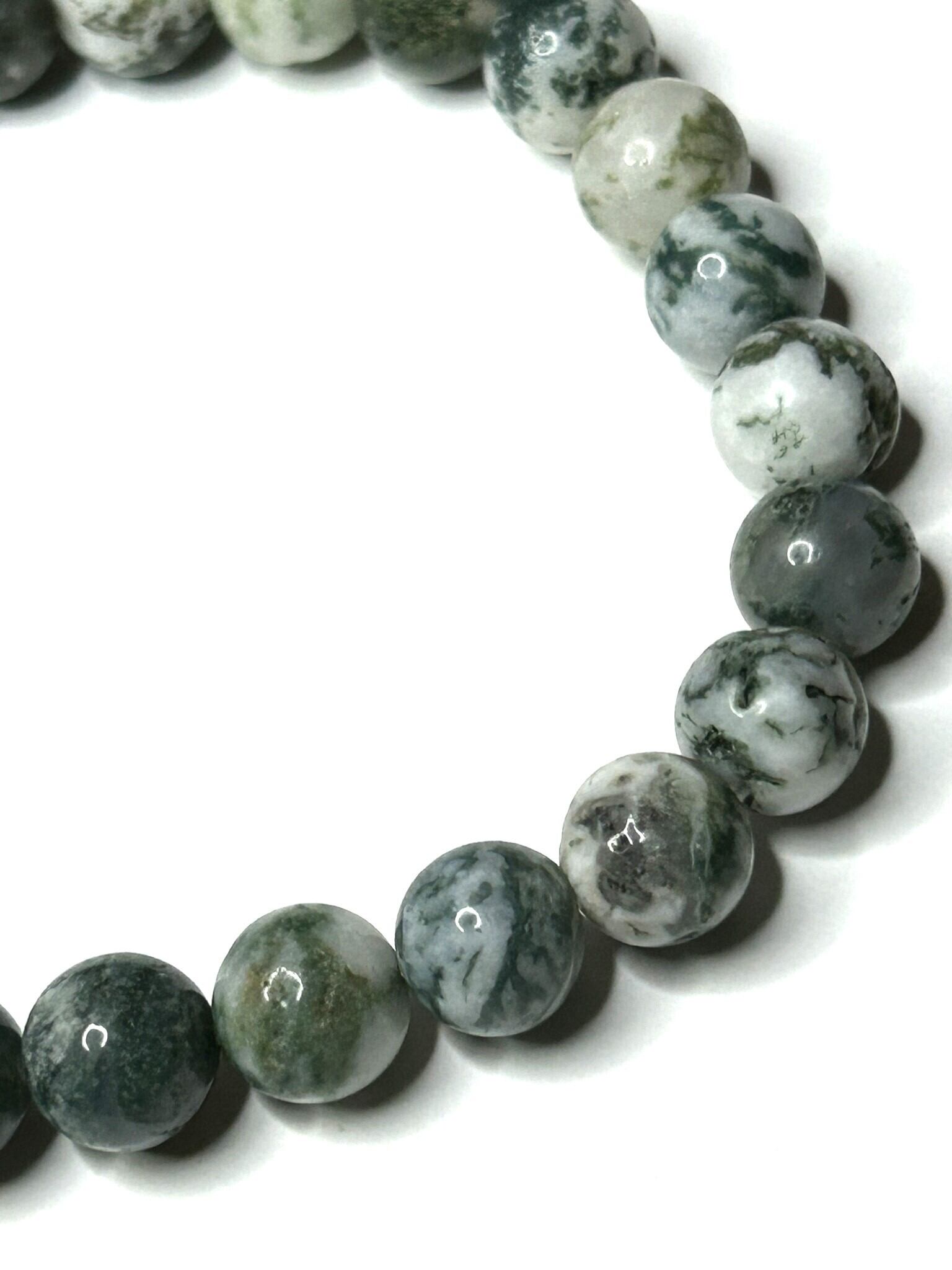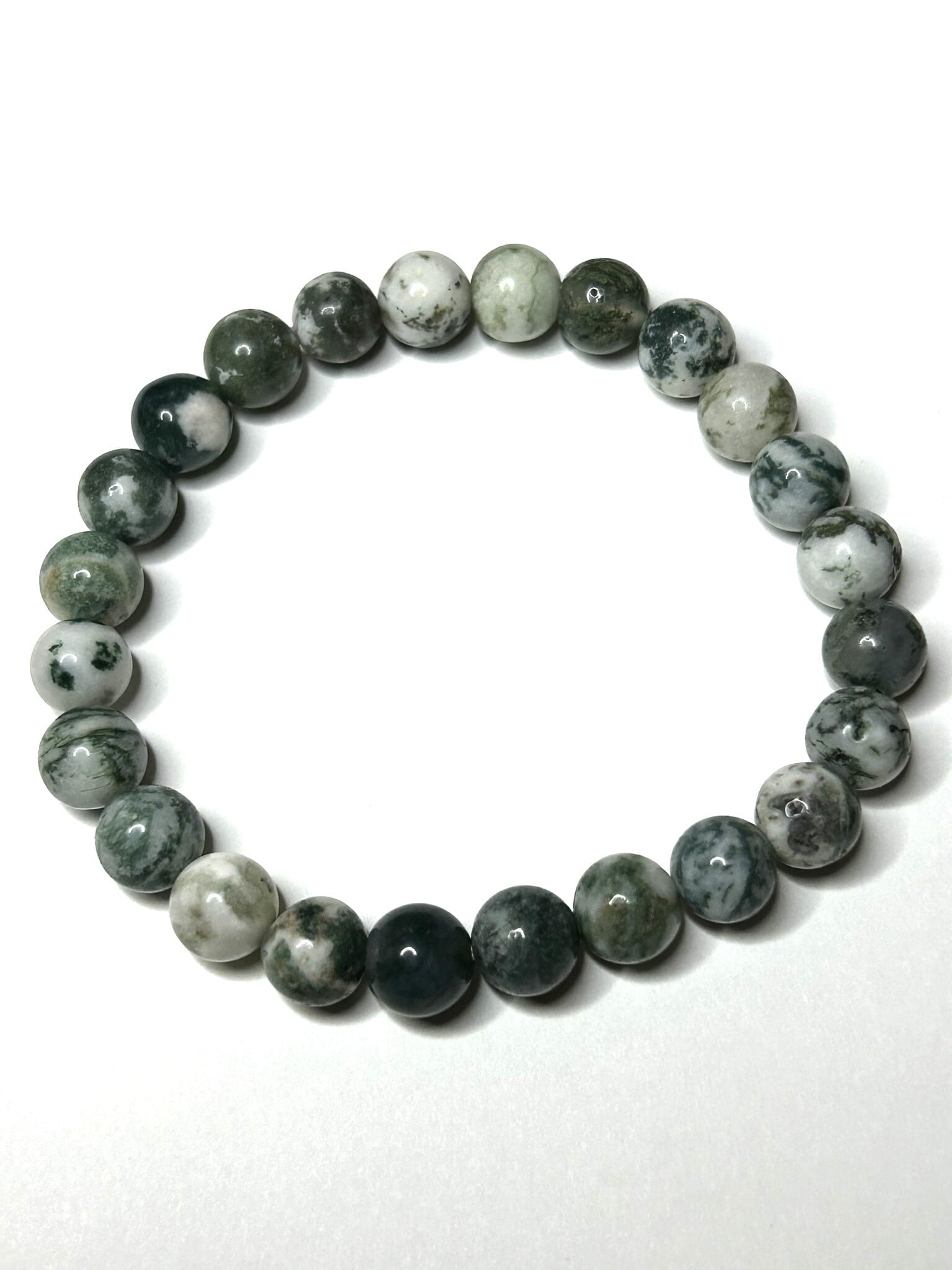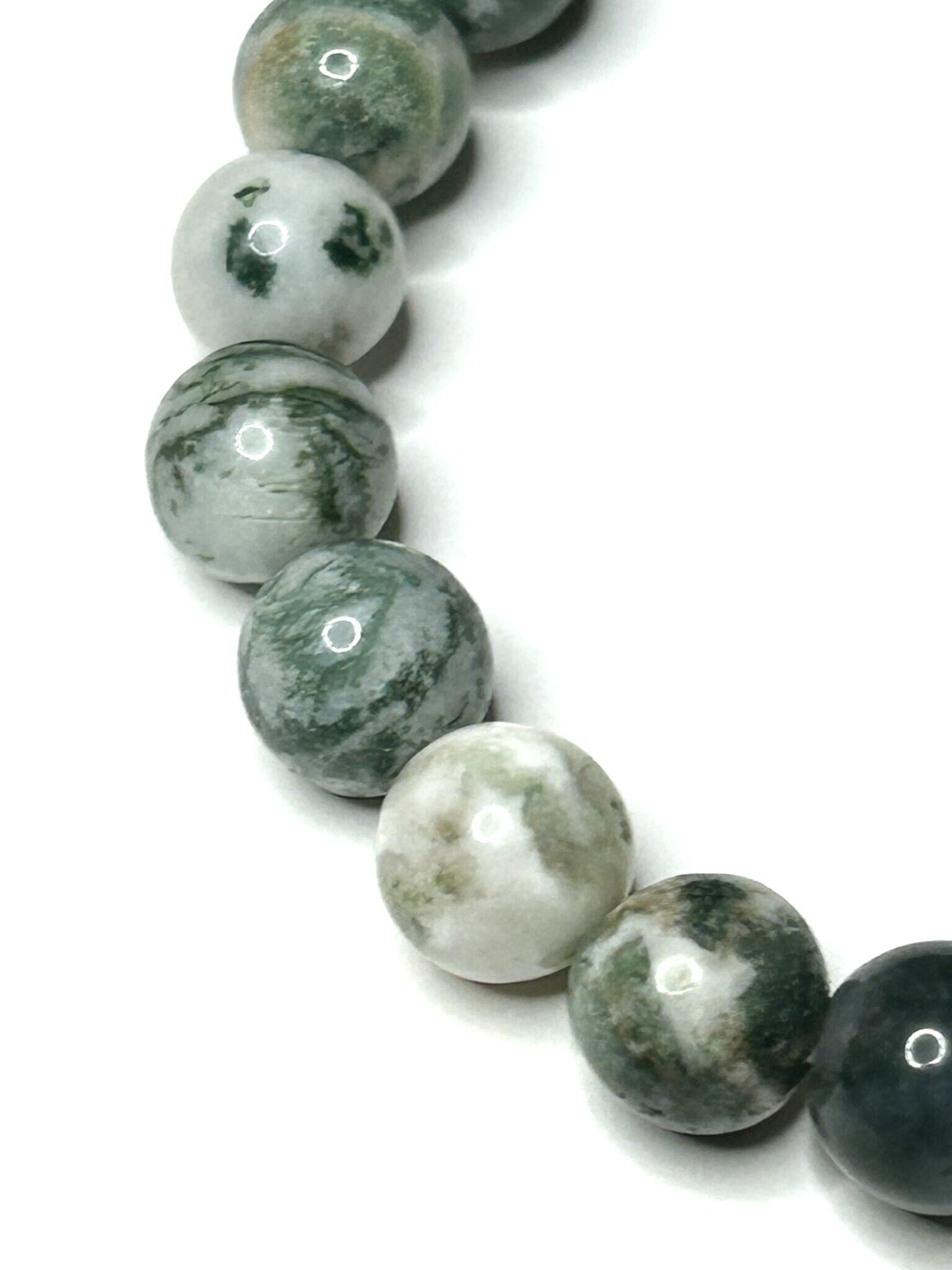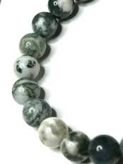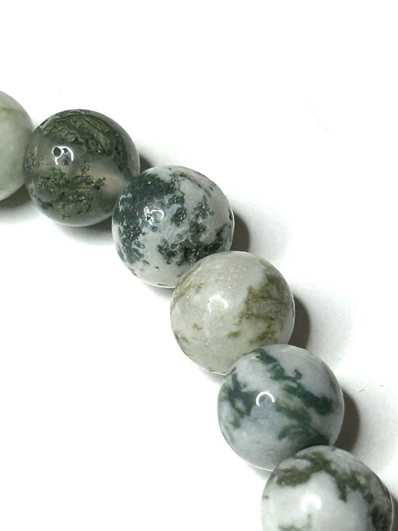 苔模様といわれる緑を中心とした模様が入るアゲート、モスアゲートのブレスレットです。