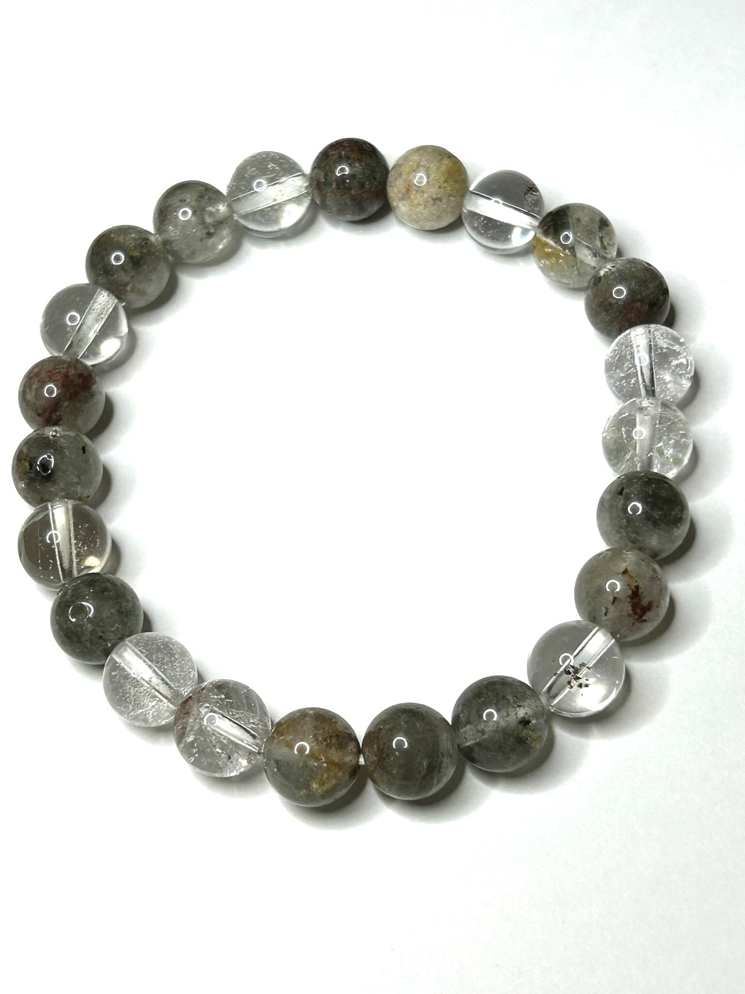 水晶の中に様々な内包物を含んだガーデンクォーツのブレスレットです。