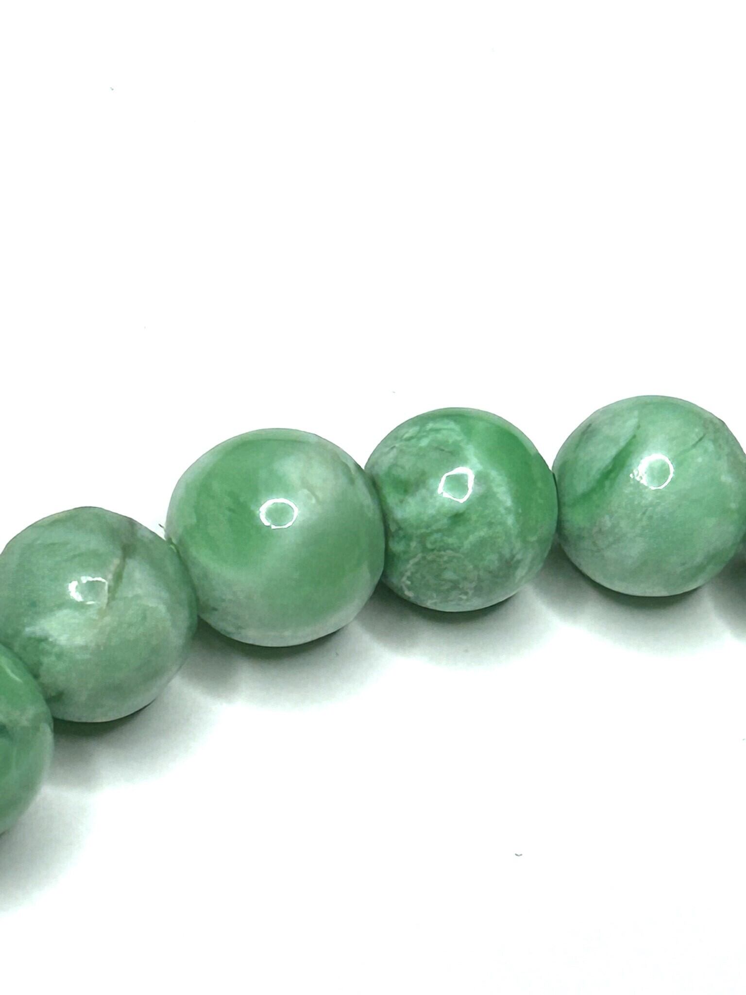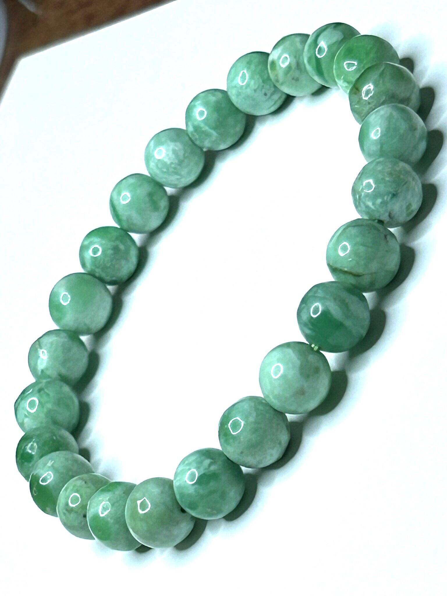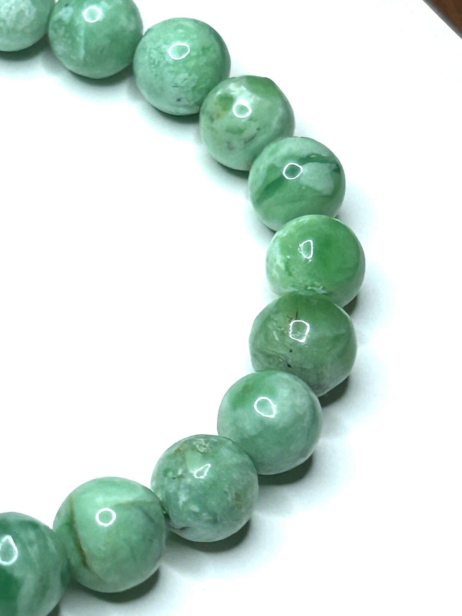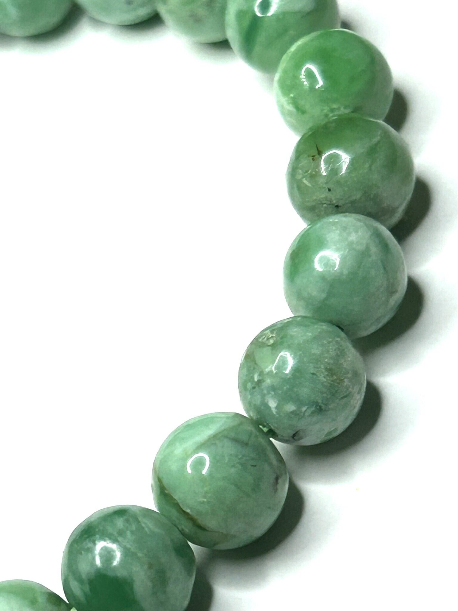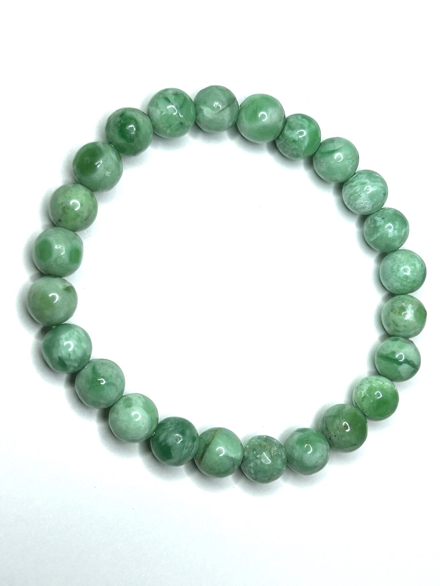 鮮やかな緑色と白色の天然石バリサイト(バリシア石)のブレスレットです。