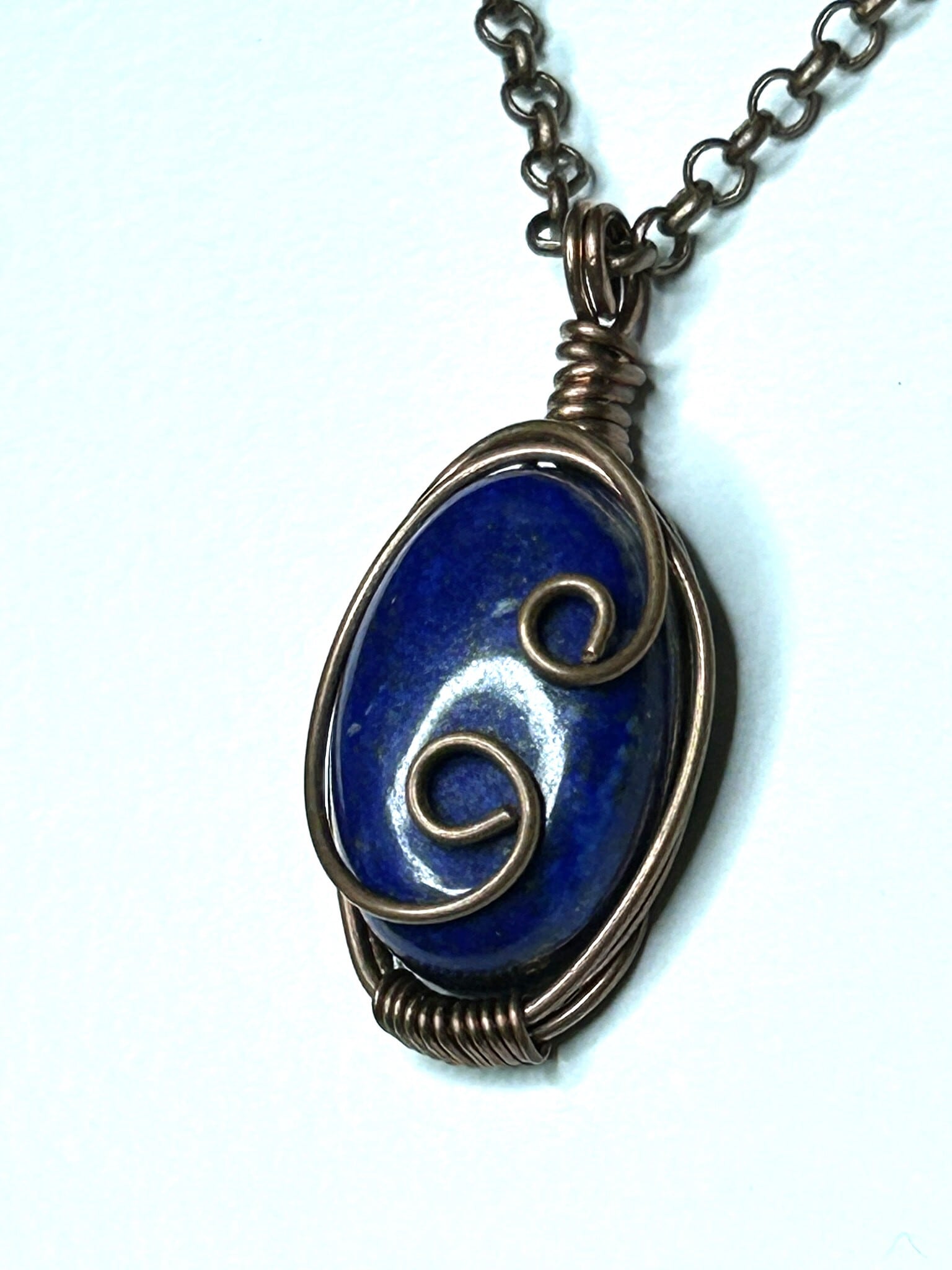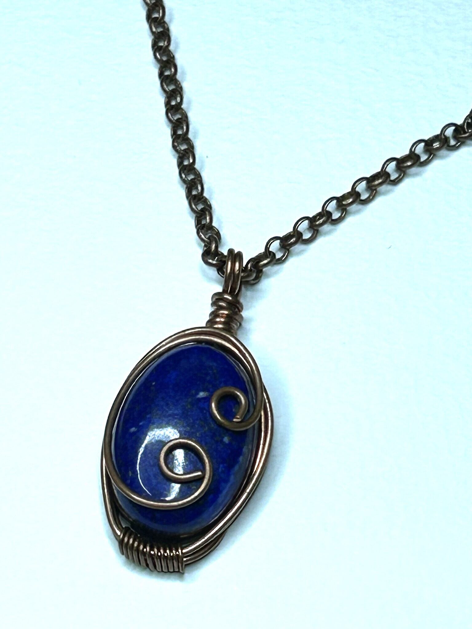 ラピスラズリのワイヤーラッピングペンダントです。