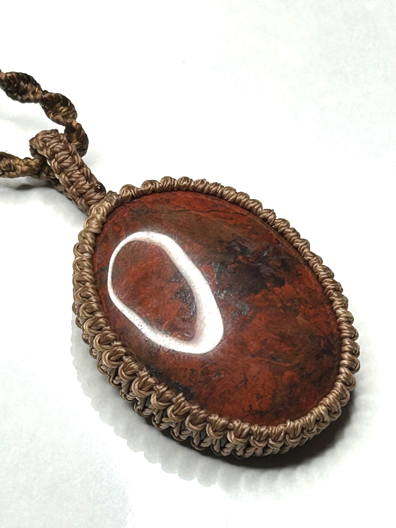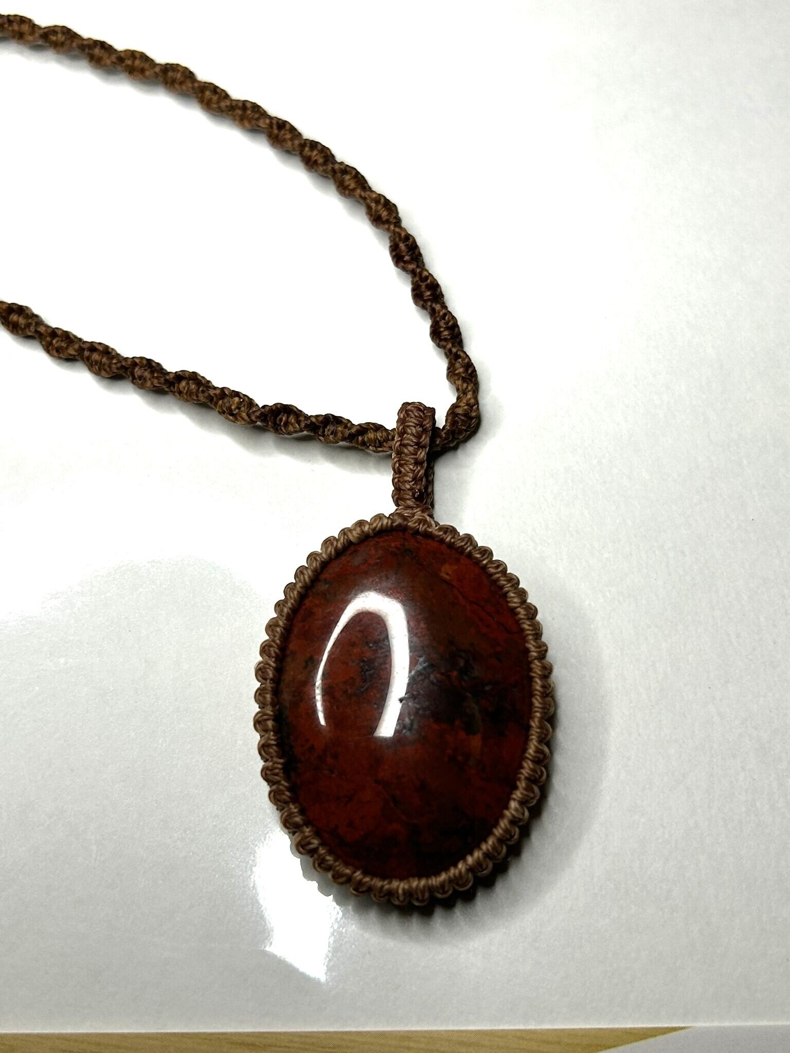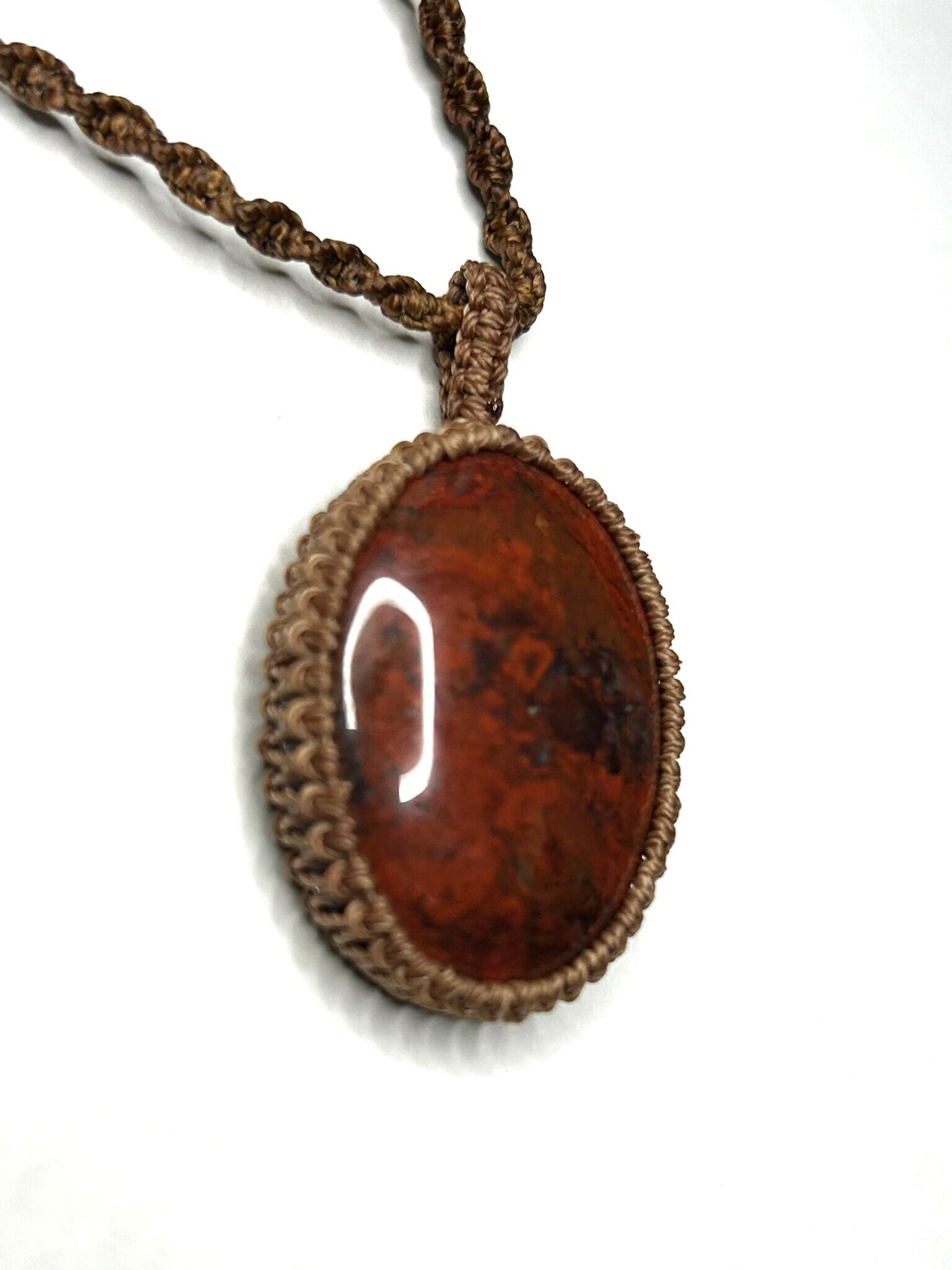 ブレシエイテッドジャスパーのカボションをマクラメでペンダントにしました。