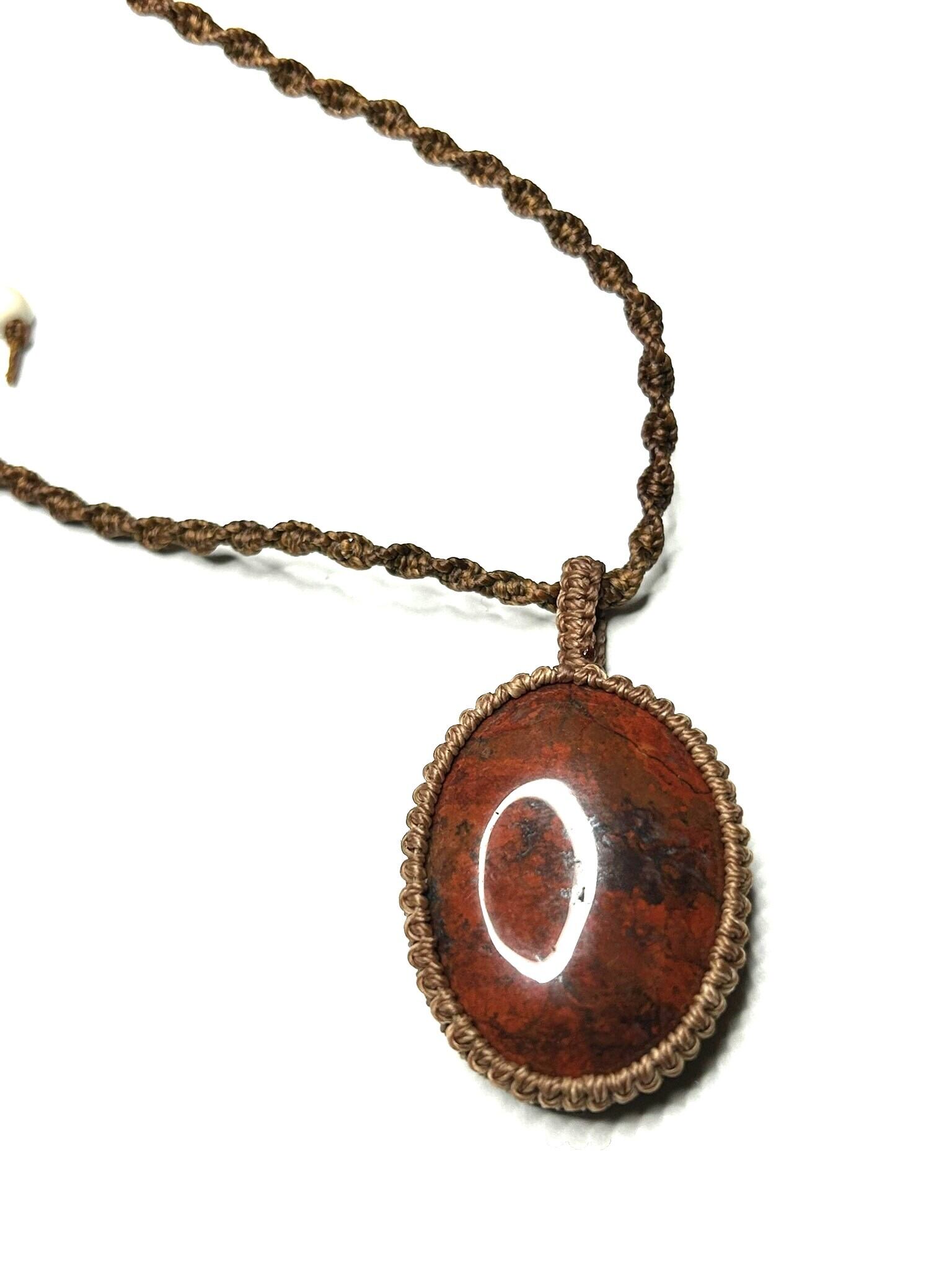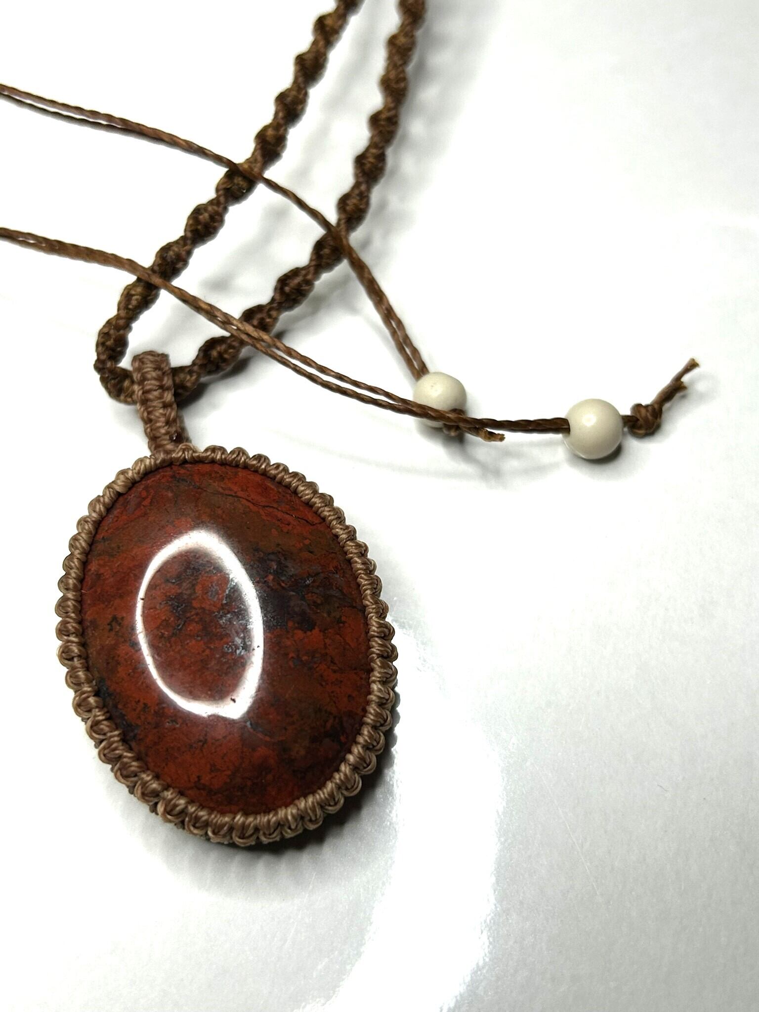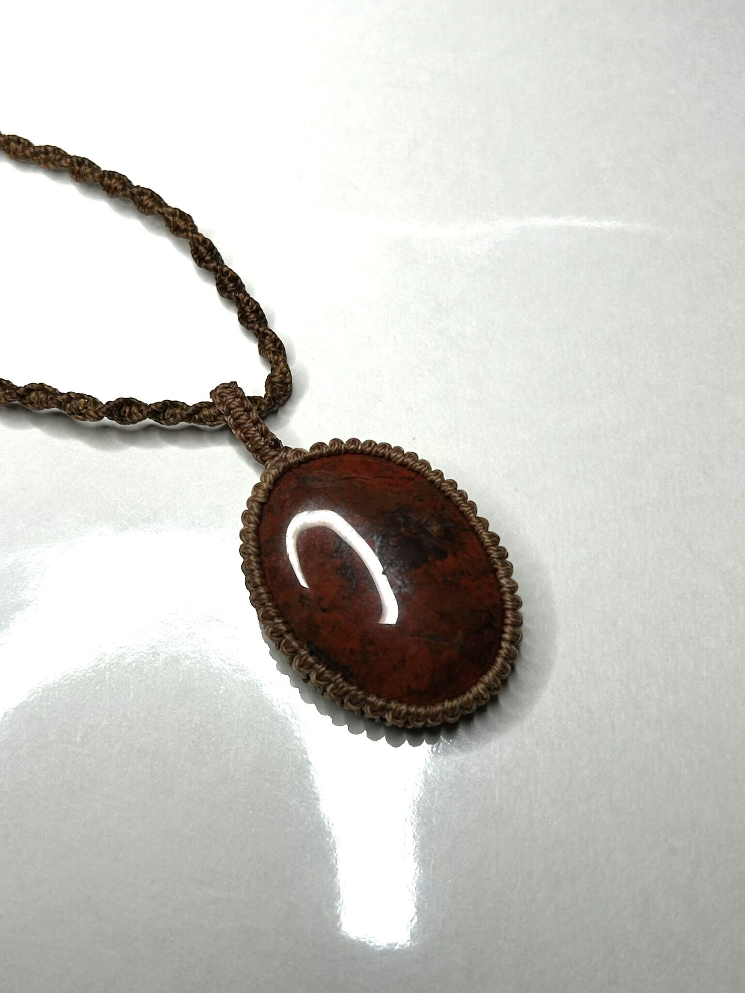 ブレシエイテッドジャスパーのカボションをマクラメでペンダントにしました。