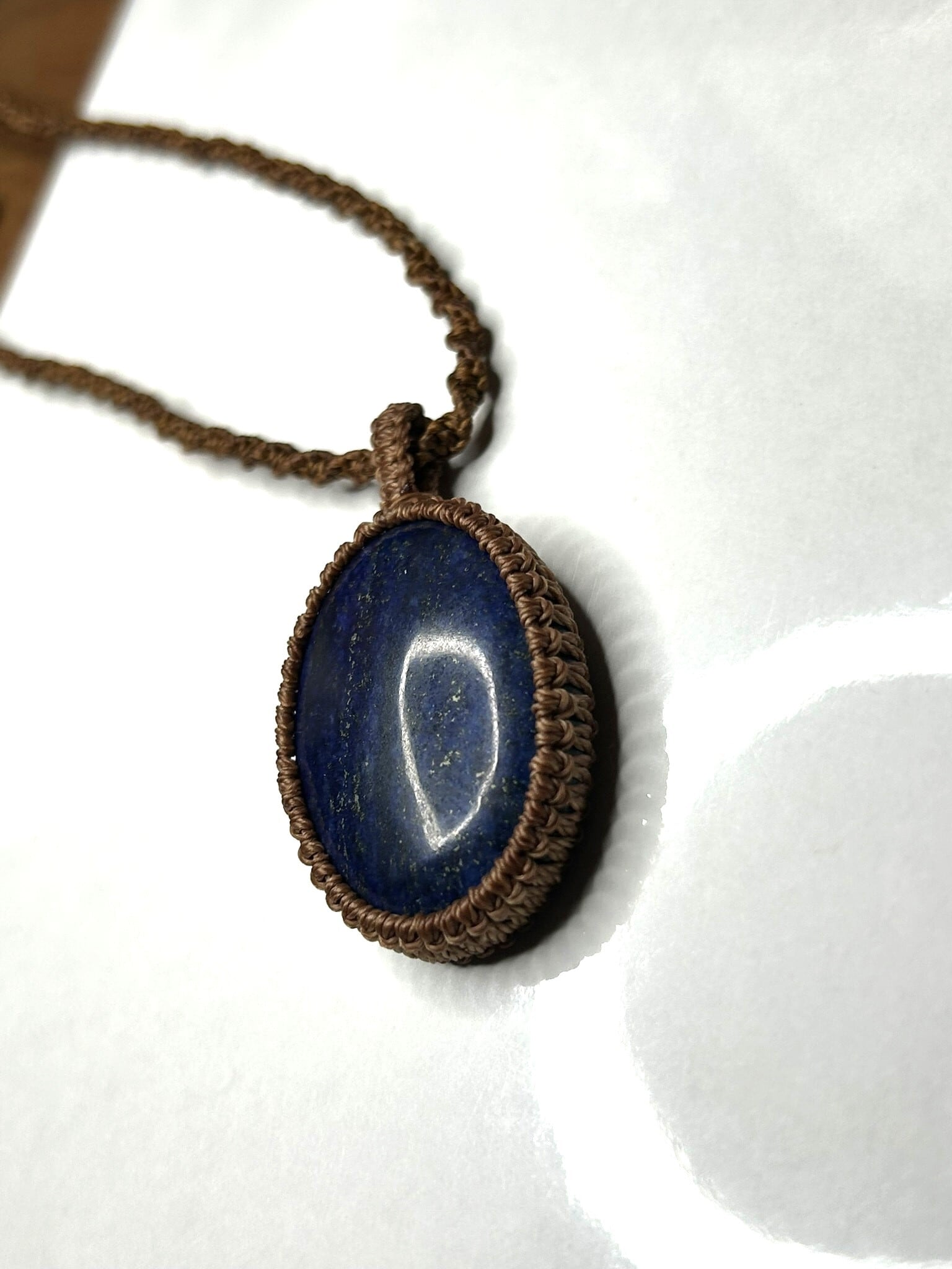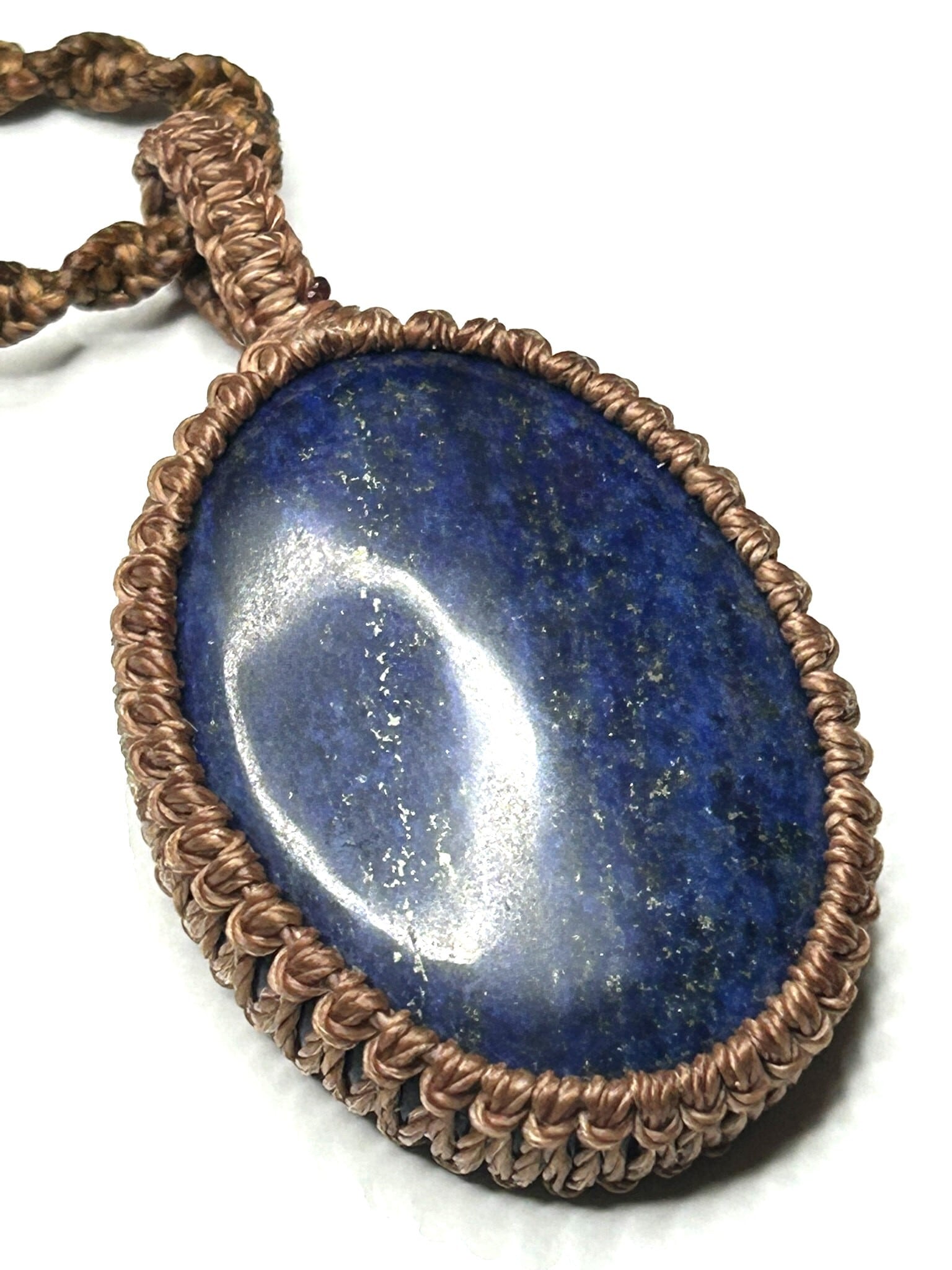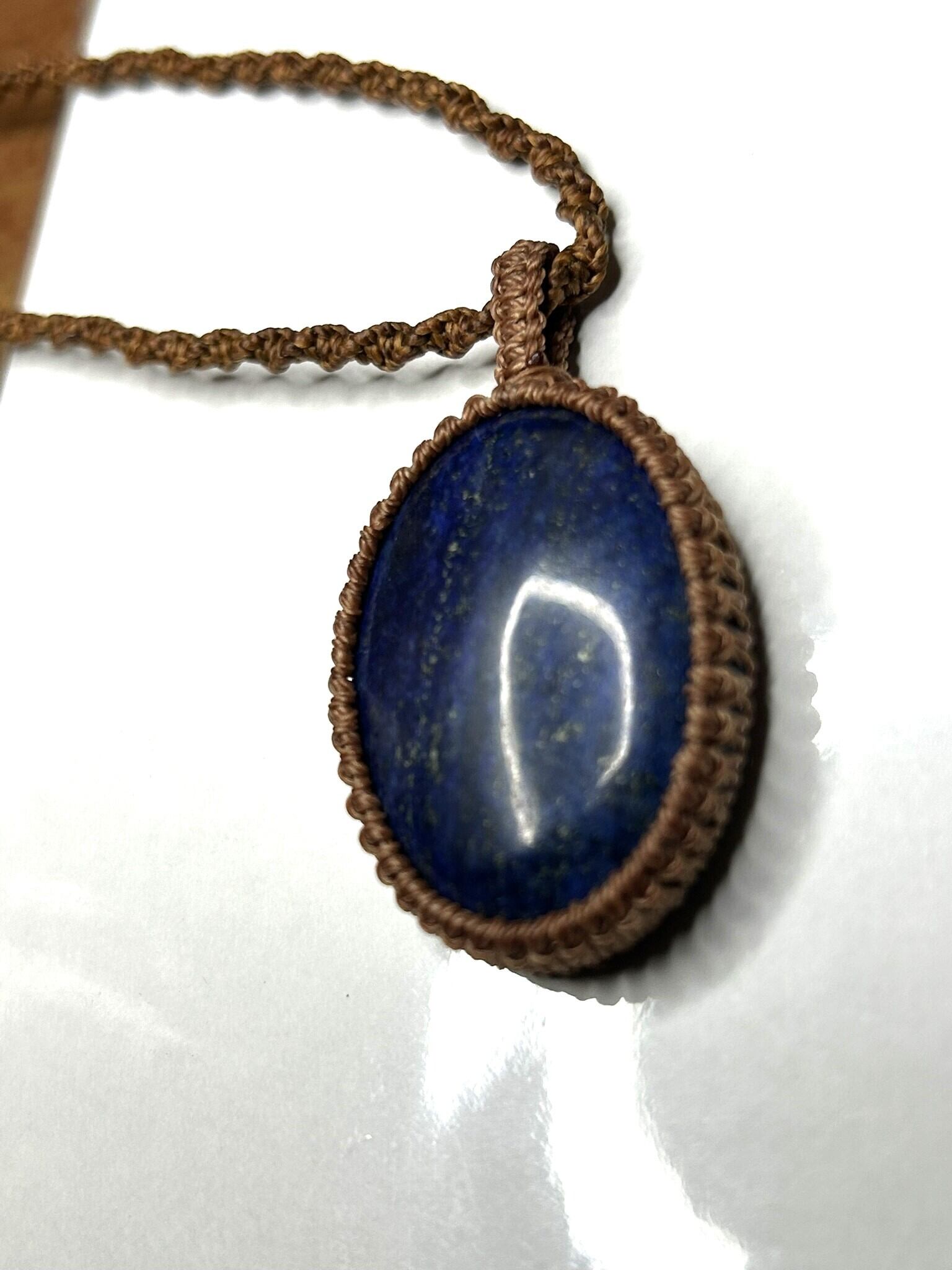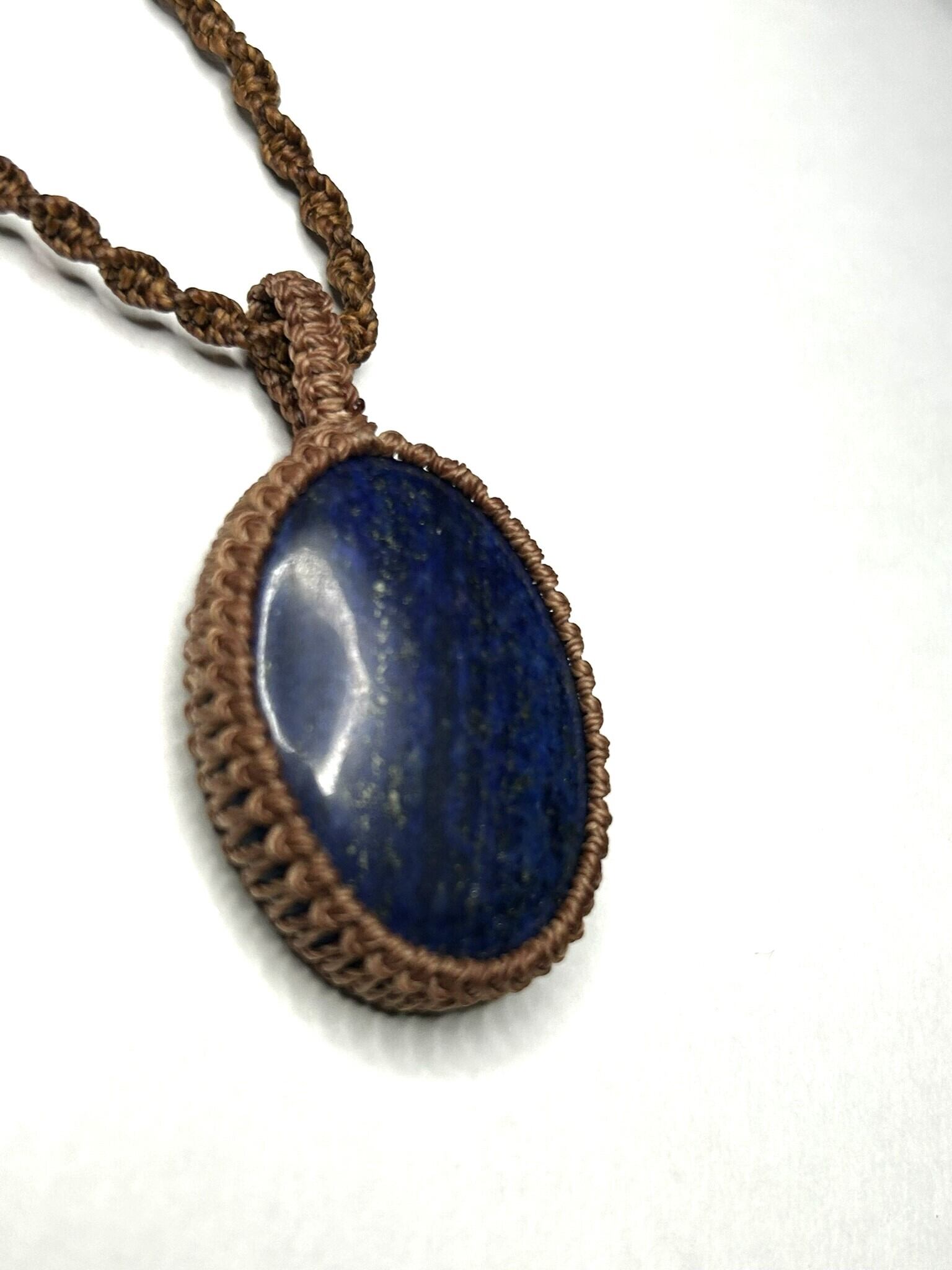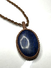 ラピスラズリのカボションをマクラメでペンダントにしました。