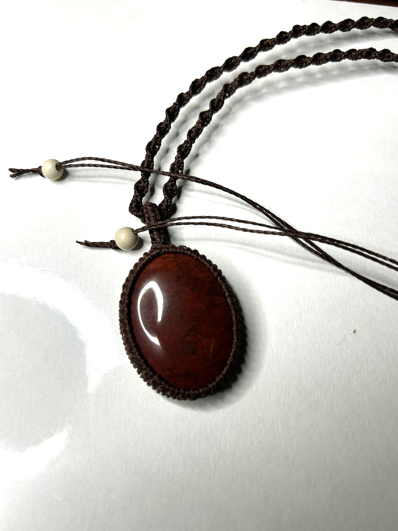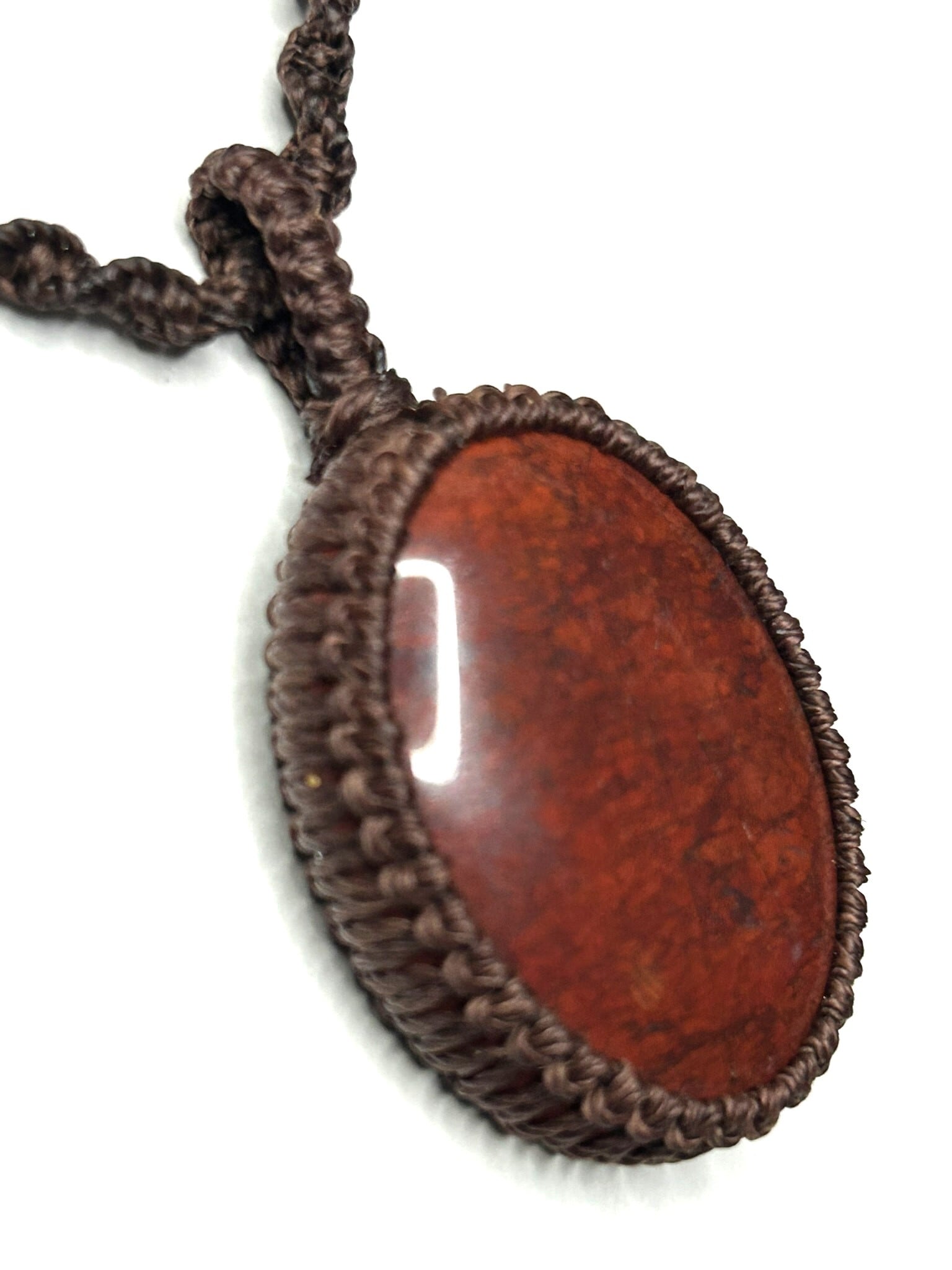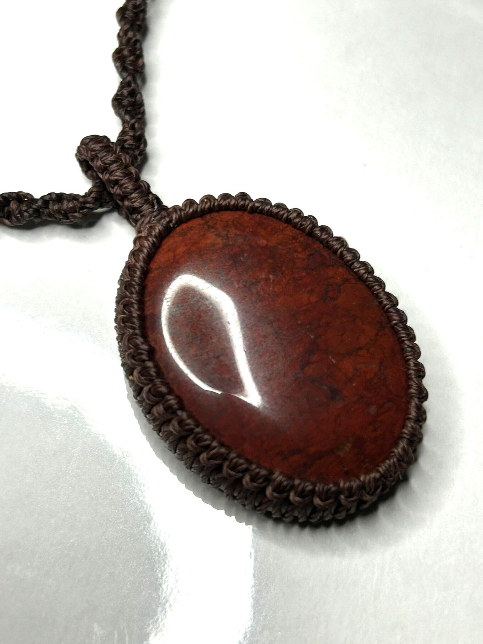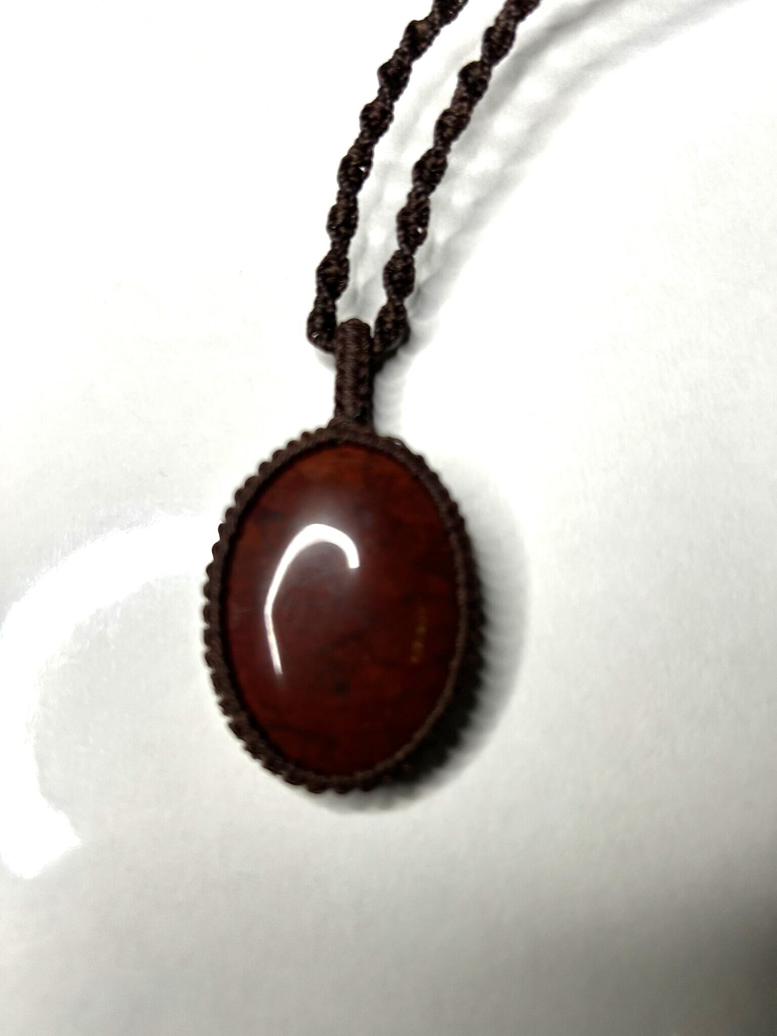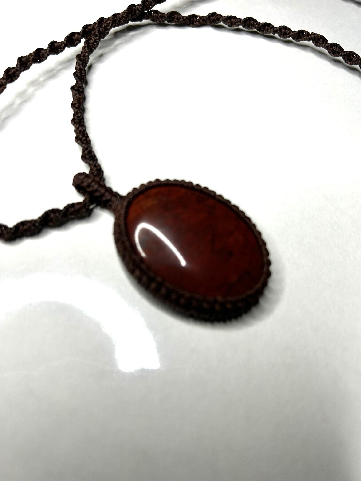 ブレシエイテッドジャスパーのカボションをマクラメでペンダントにしました。