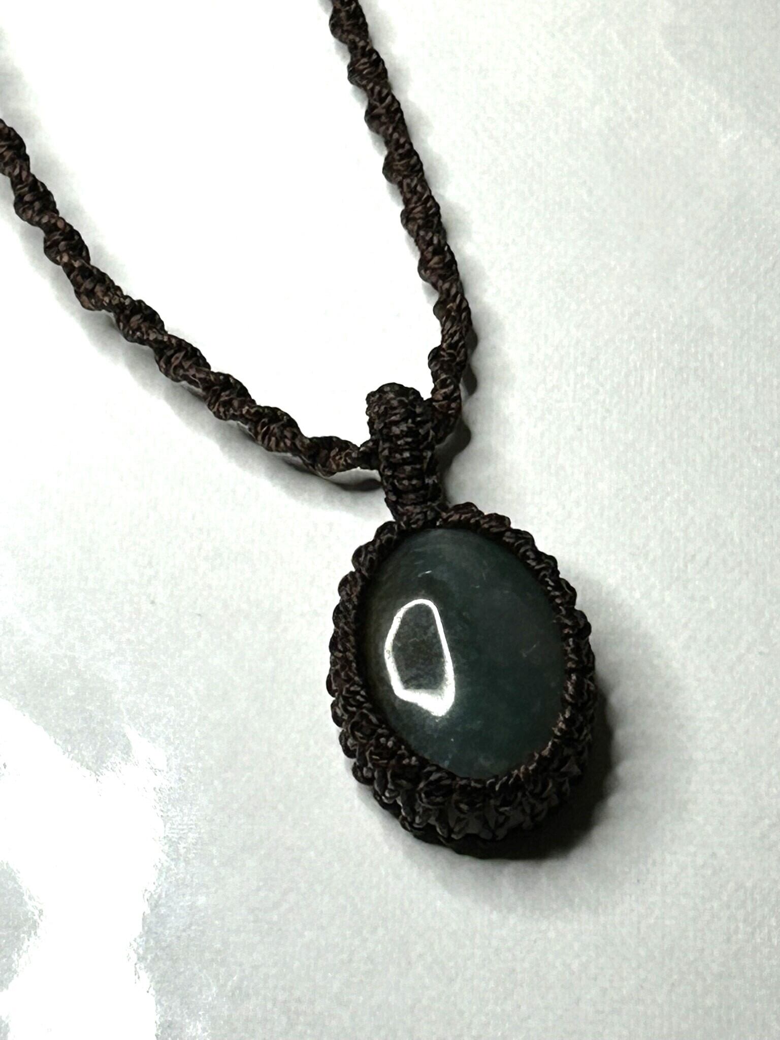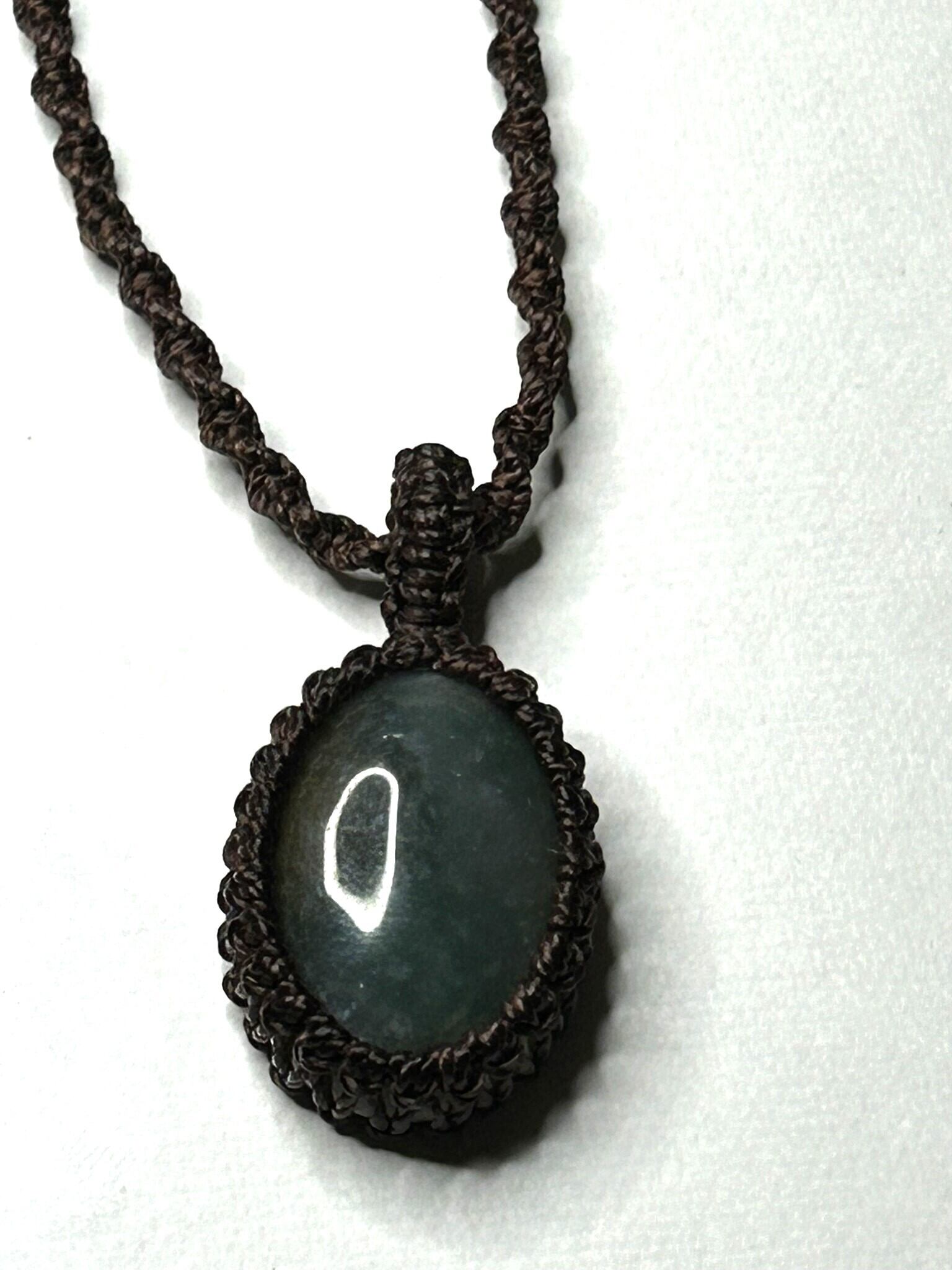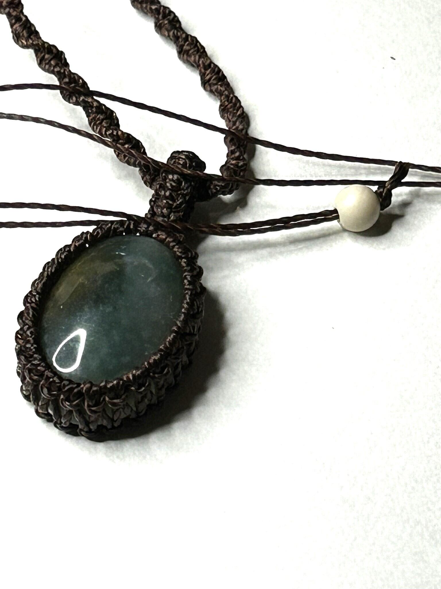 モスアゲートのカボションをマクラメでペンダントにしました。