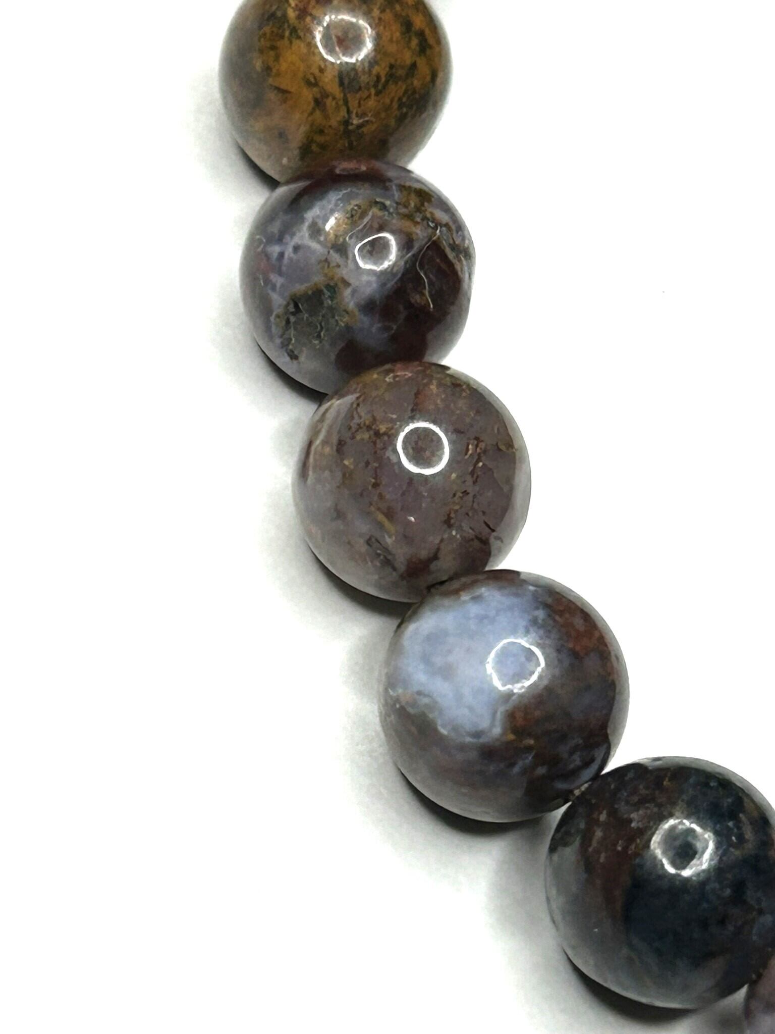 深みのあるブルーやブラウンが渦を巻くように混ざり合い、まるで嵐の空や大地のエネルギーを閉じ込めたような独特の模様を持つ天然石「ピーターサイト」。