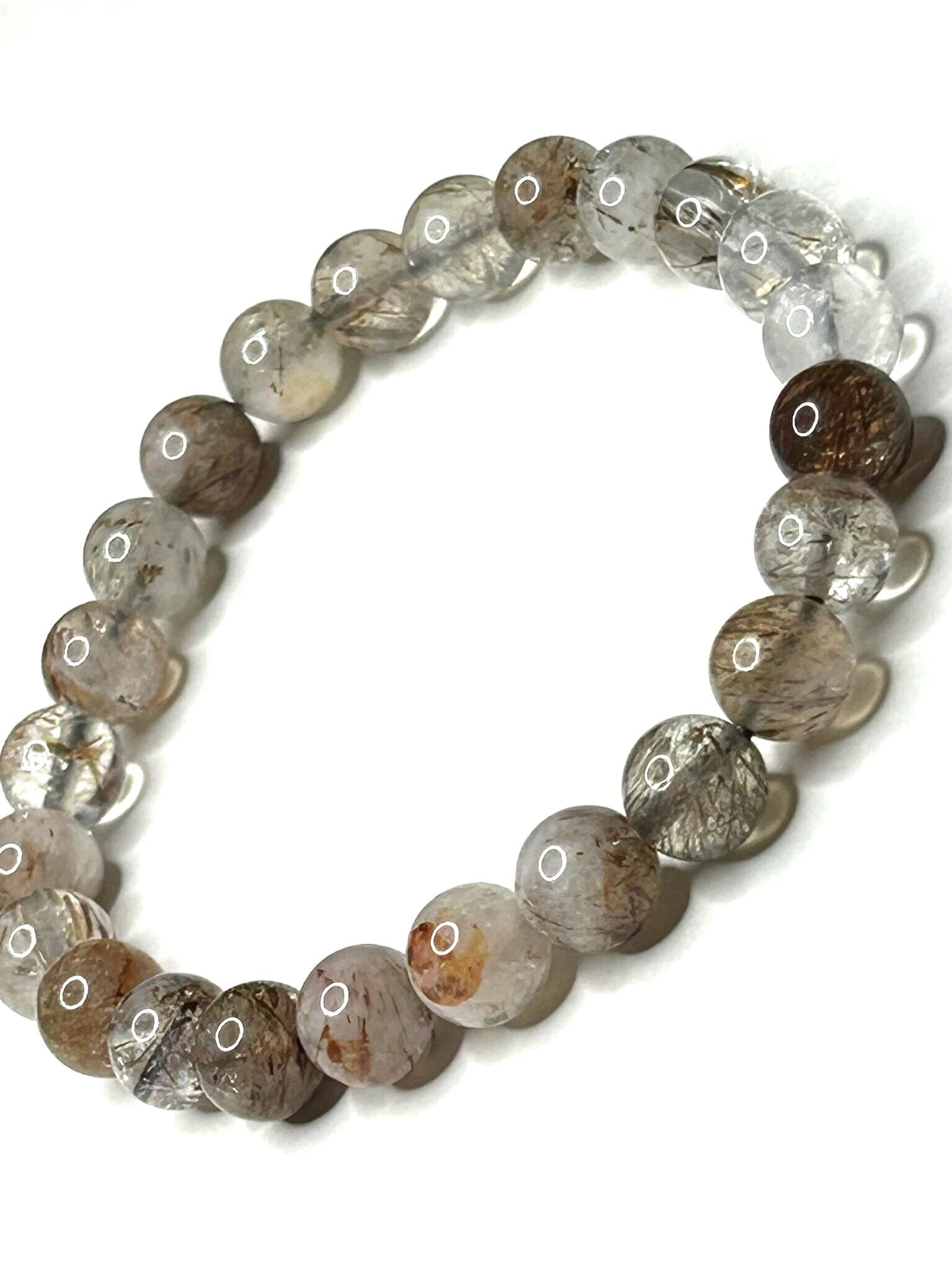 黒やブラウンの雲母を内包した透明感あるクォーツを使用した、自然美あふれるブレスレットです。