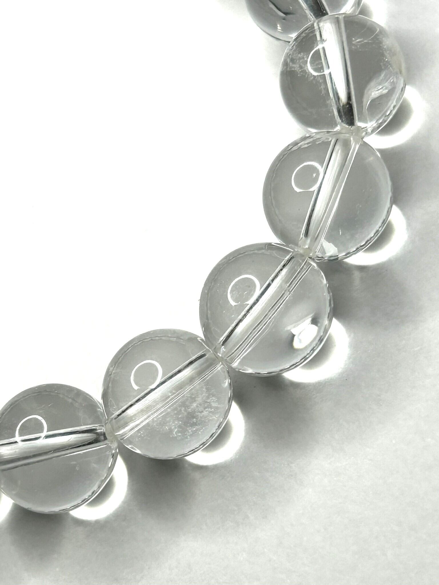 澄みきった透明感が美しい、王道でありながら常に高い人気を誇る、天然水晶(クリスタル)のラウンドブレスレットです。
