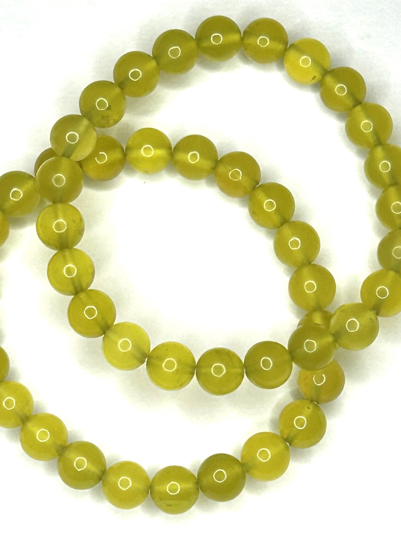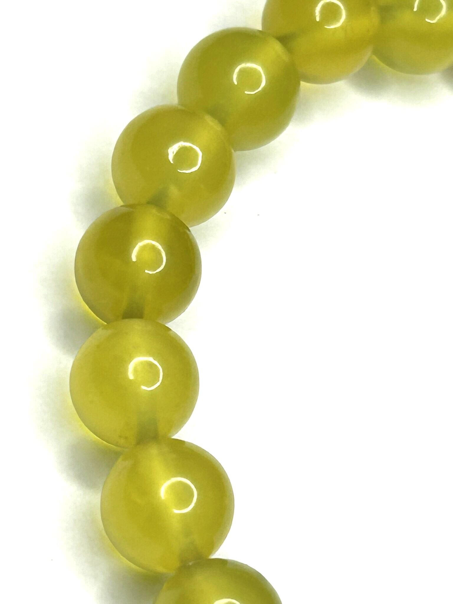 優しい透明感のあるオリーブグリーンが特徴のサーペンティン8mmブレスレットです。