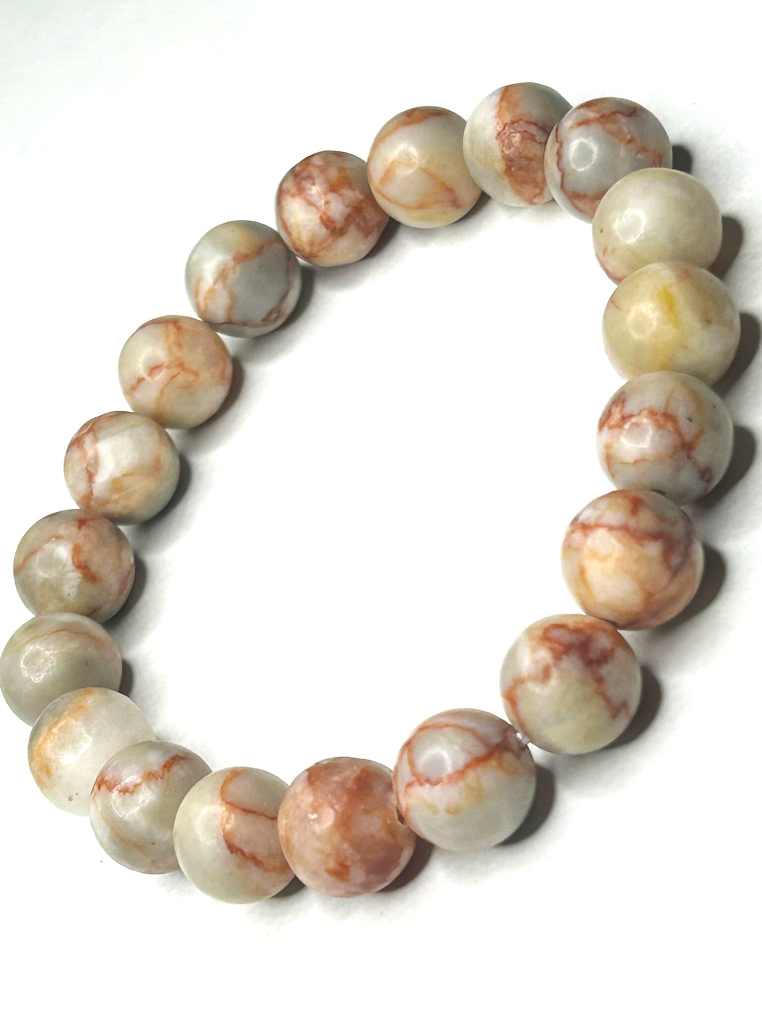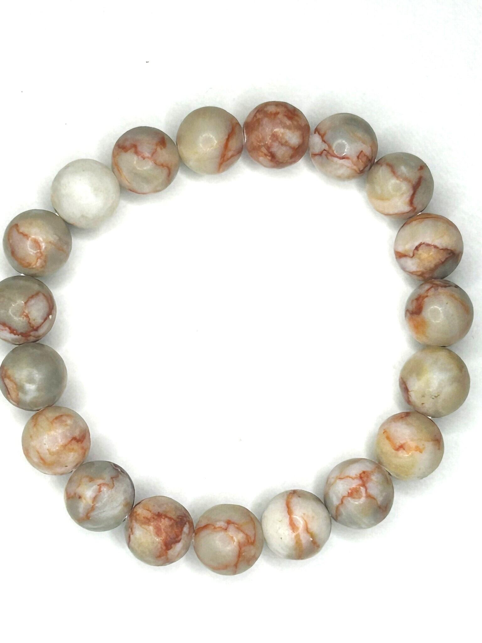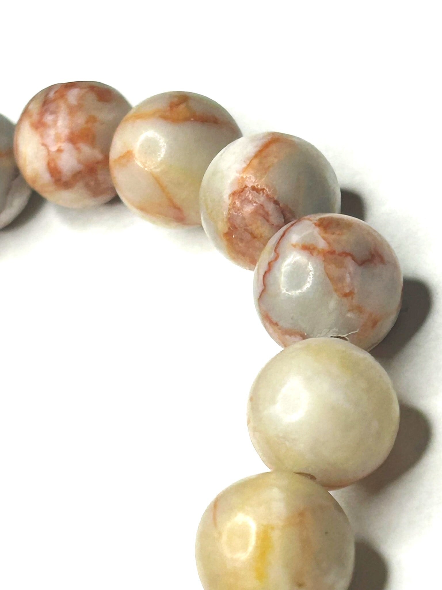 赤い線の物は国内ではあまり見かけないので10mm珠でブレスレットをご用意しました。