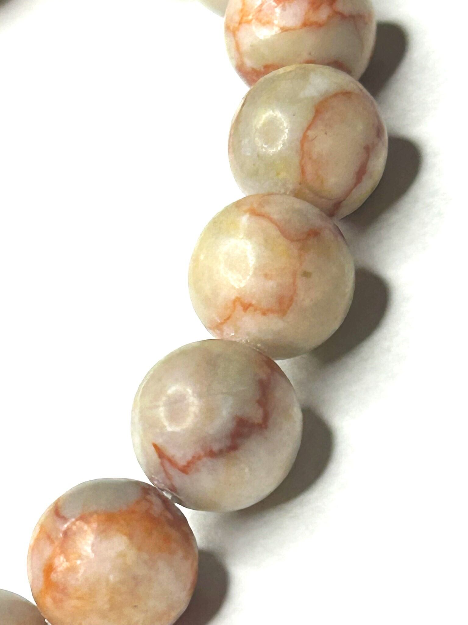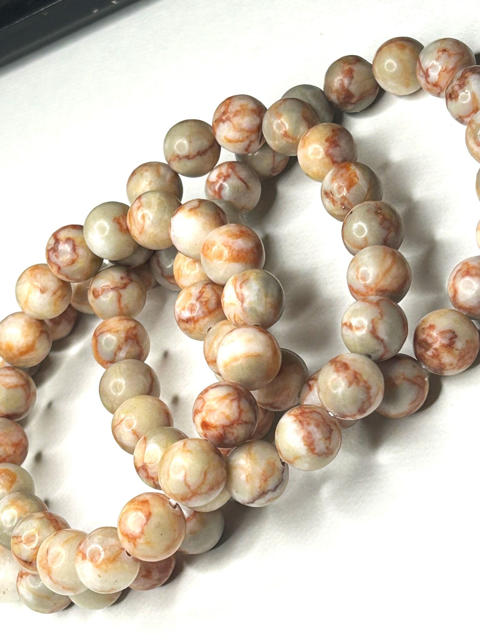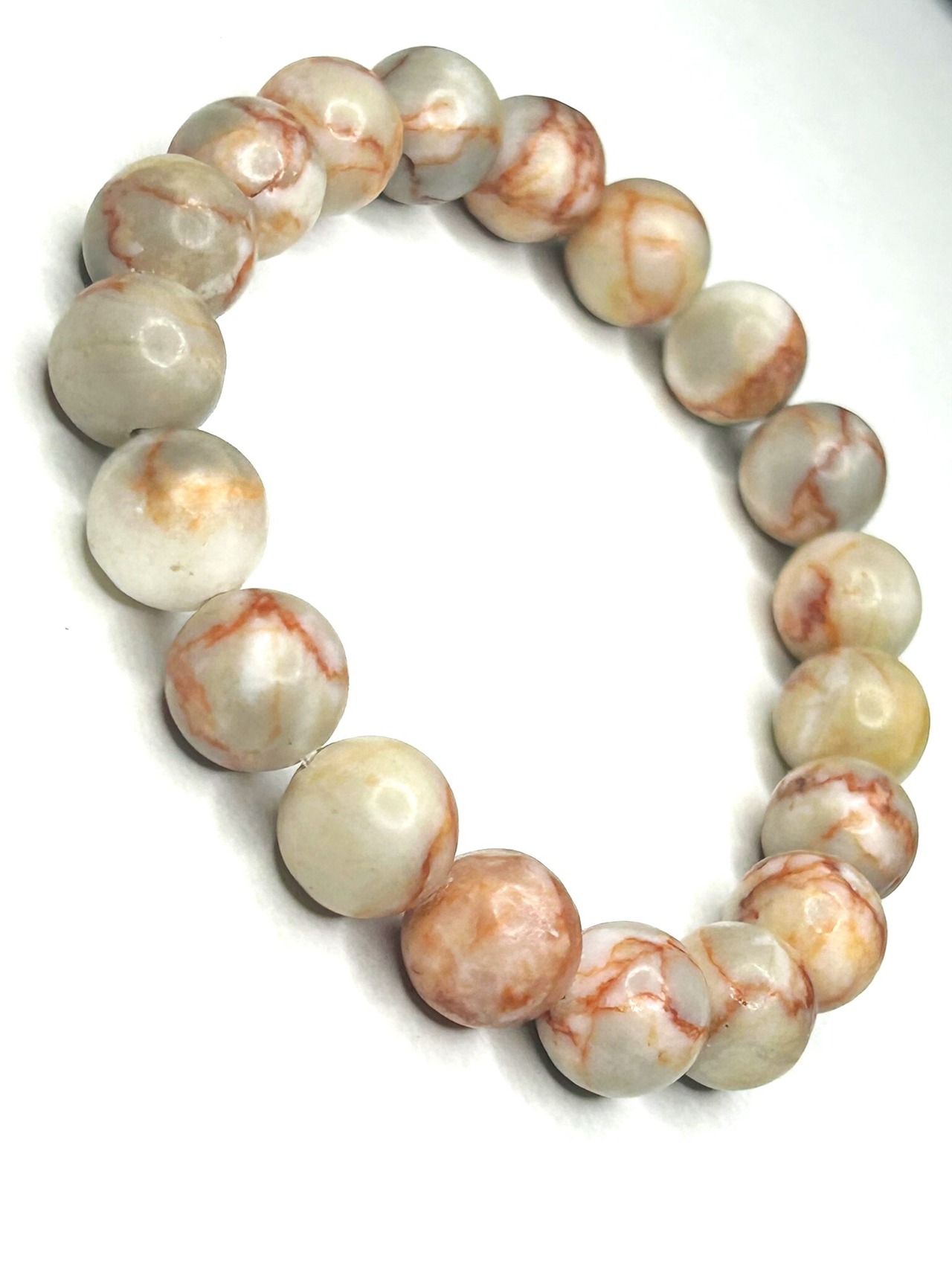 赤い線の物は国内ではあまり見かけないので10mm珠でブレスレットをご用意しました。