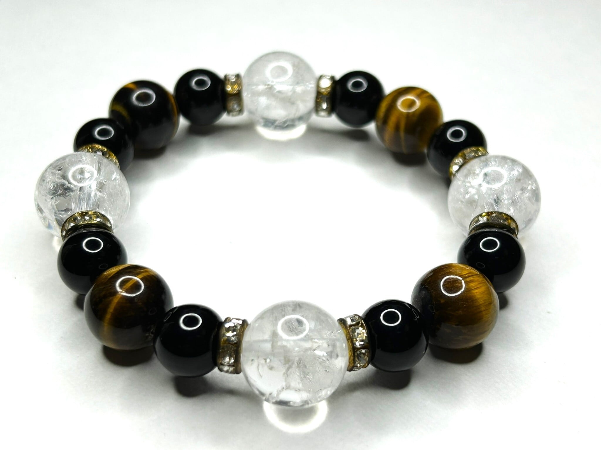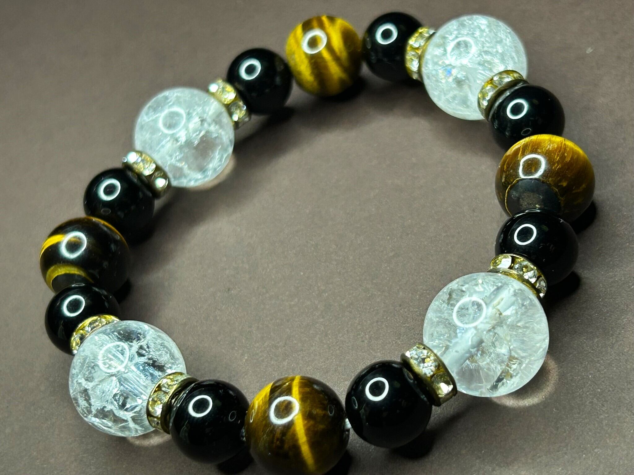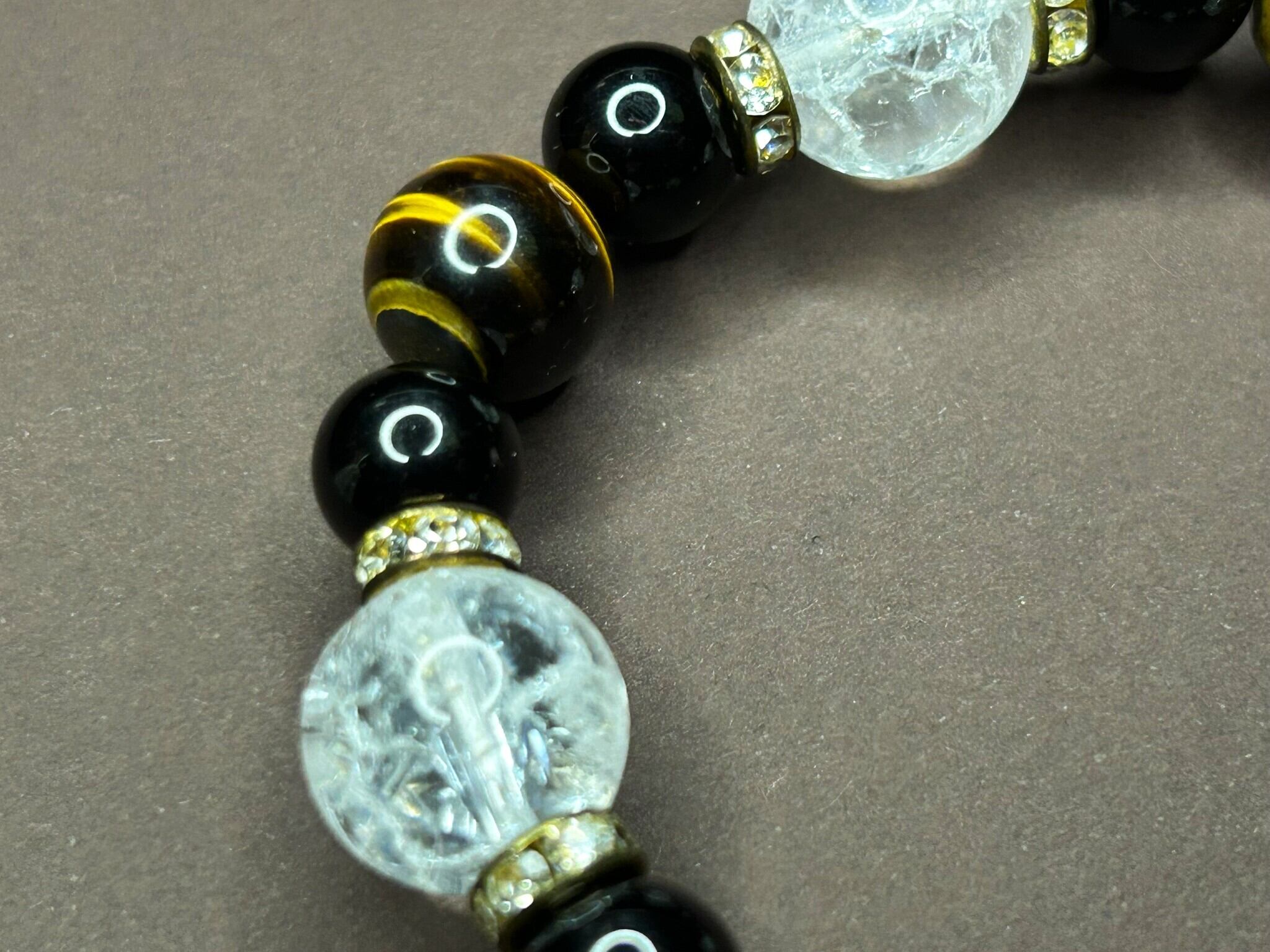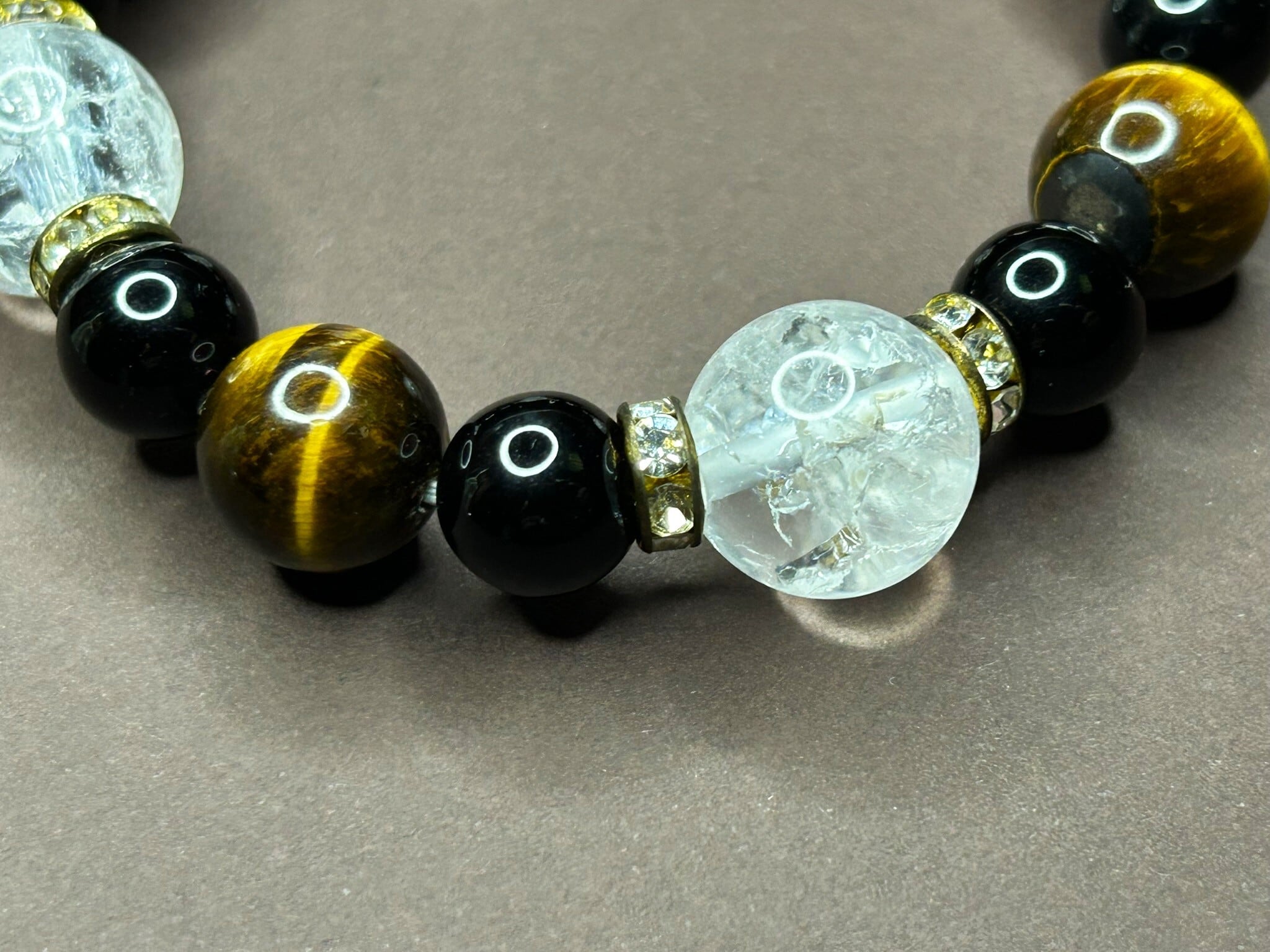 クラック水晶×タイガーアイ×ブラックオニキス ブレスレット A(平ロンデル)