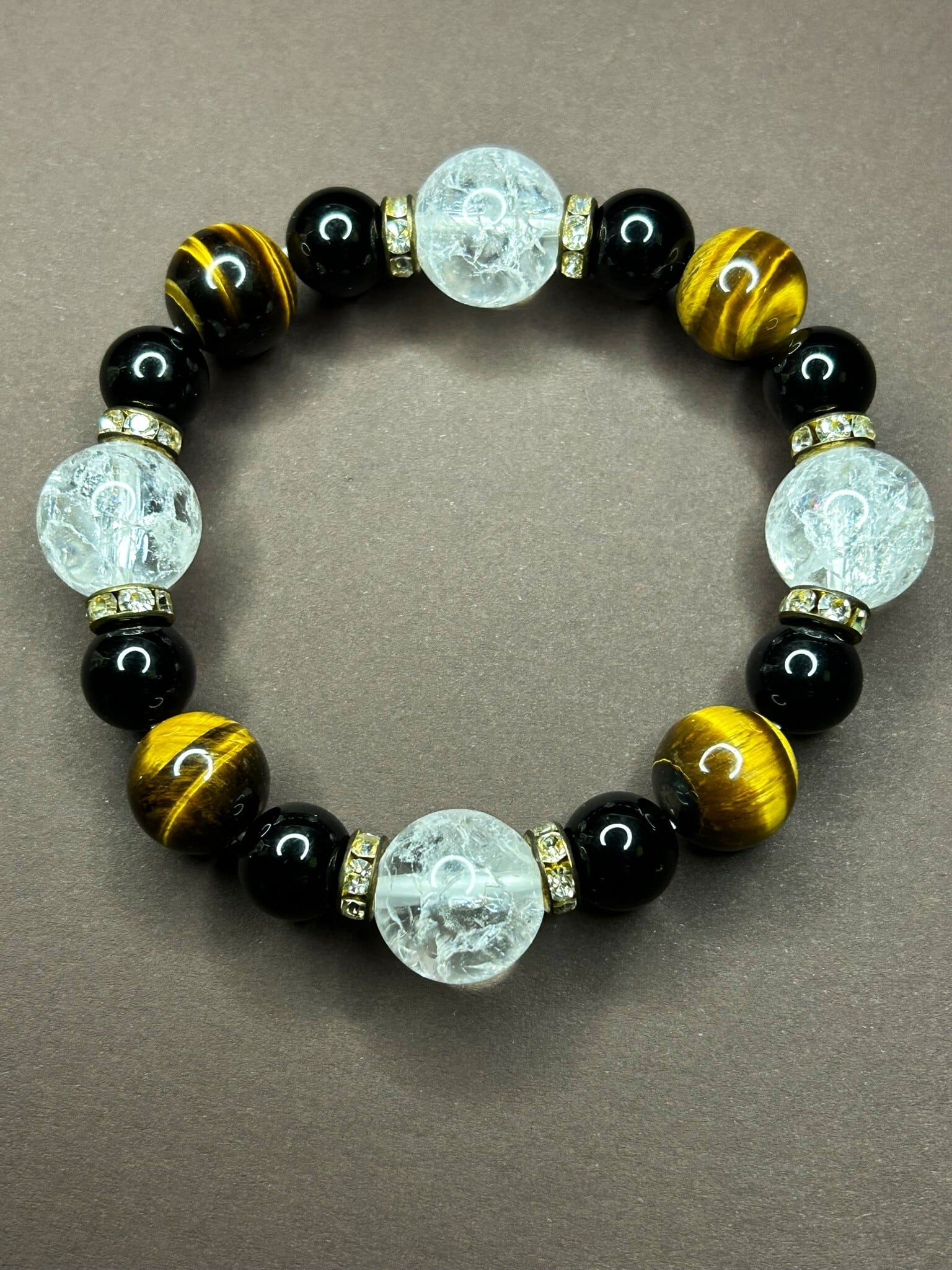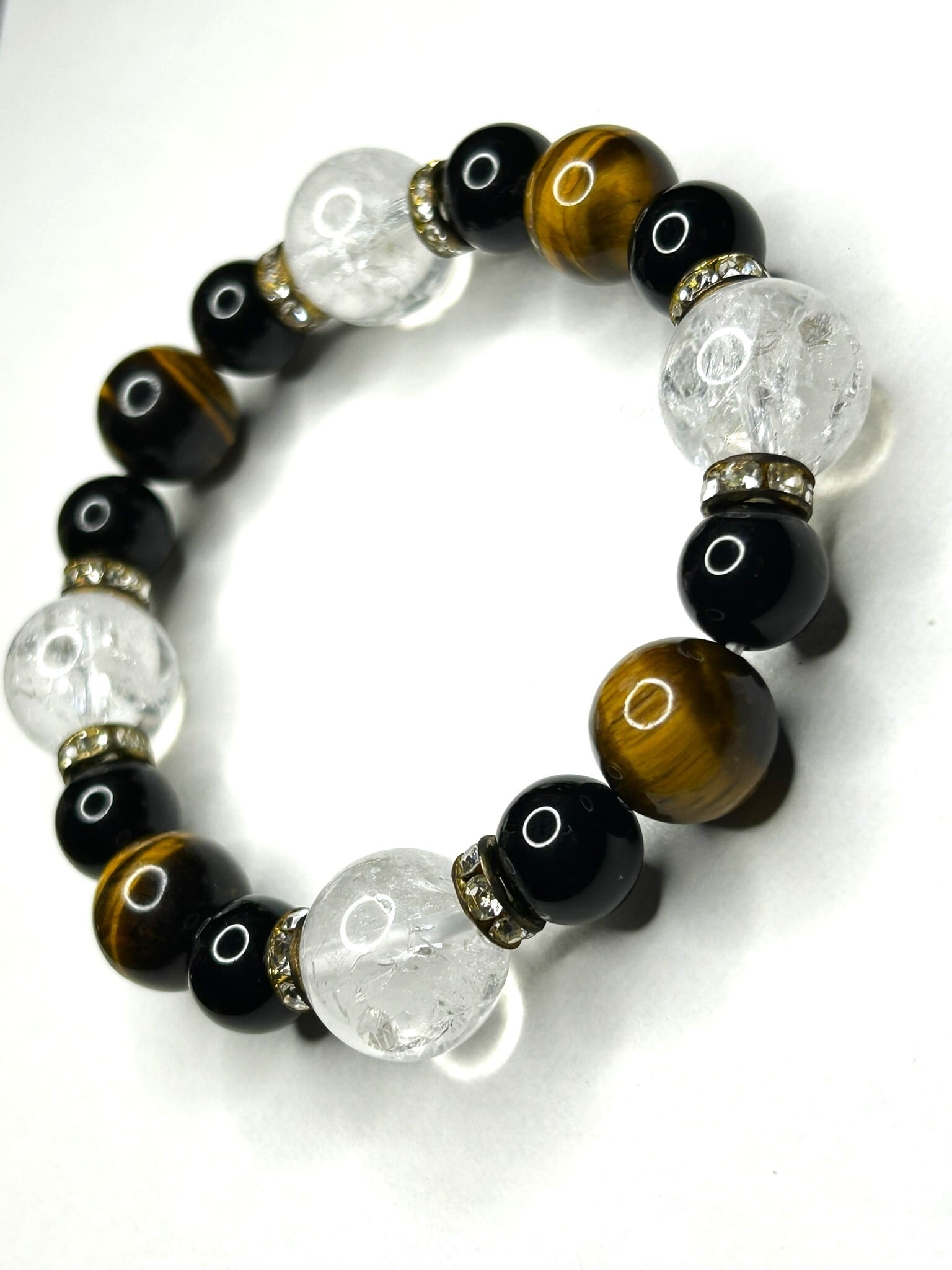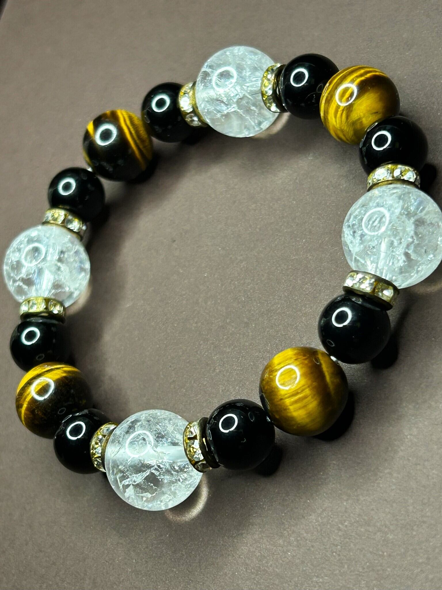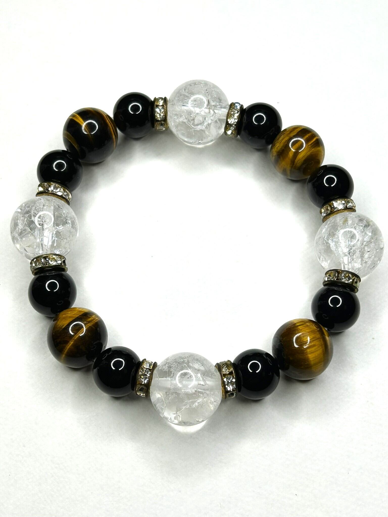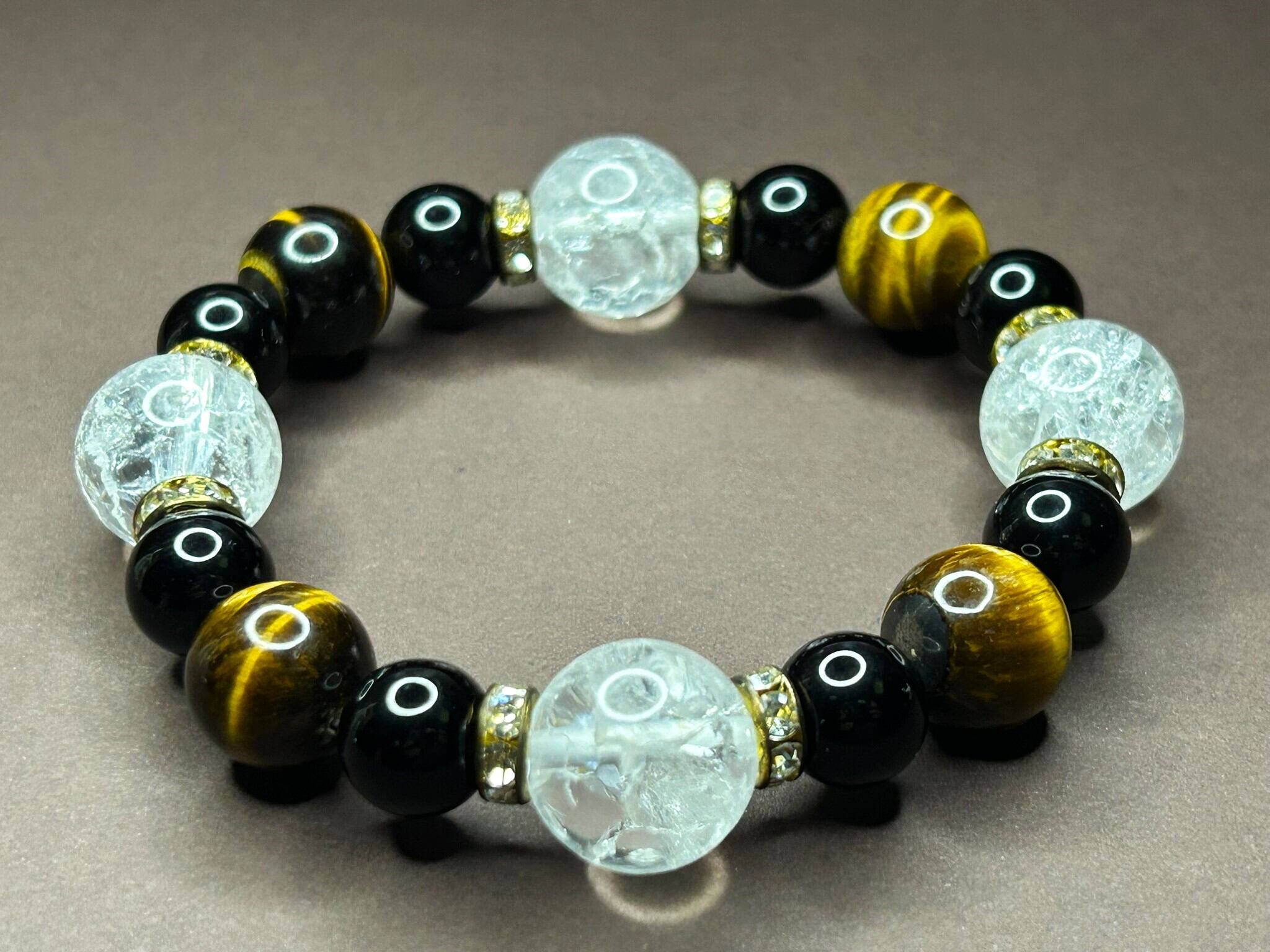 クラック水晶×タイガーアイ×ブラックオニキス ブレスレット A(平ロンデル)