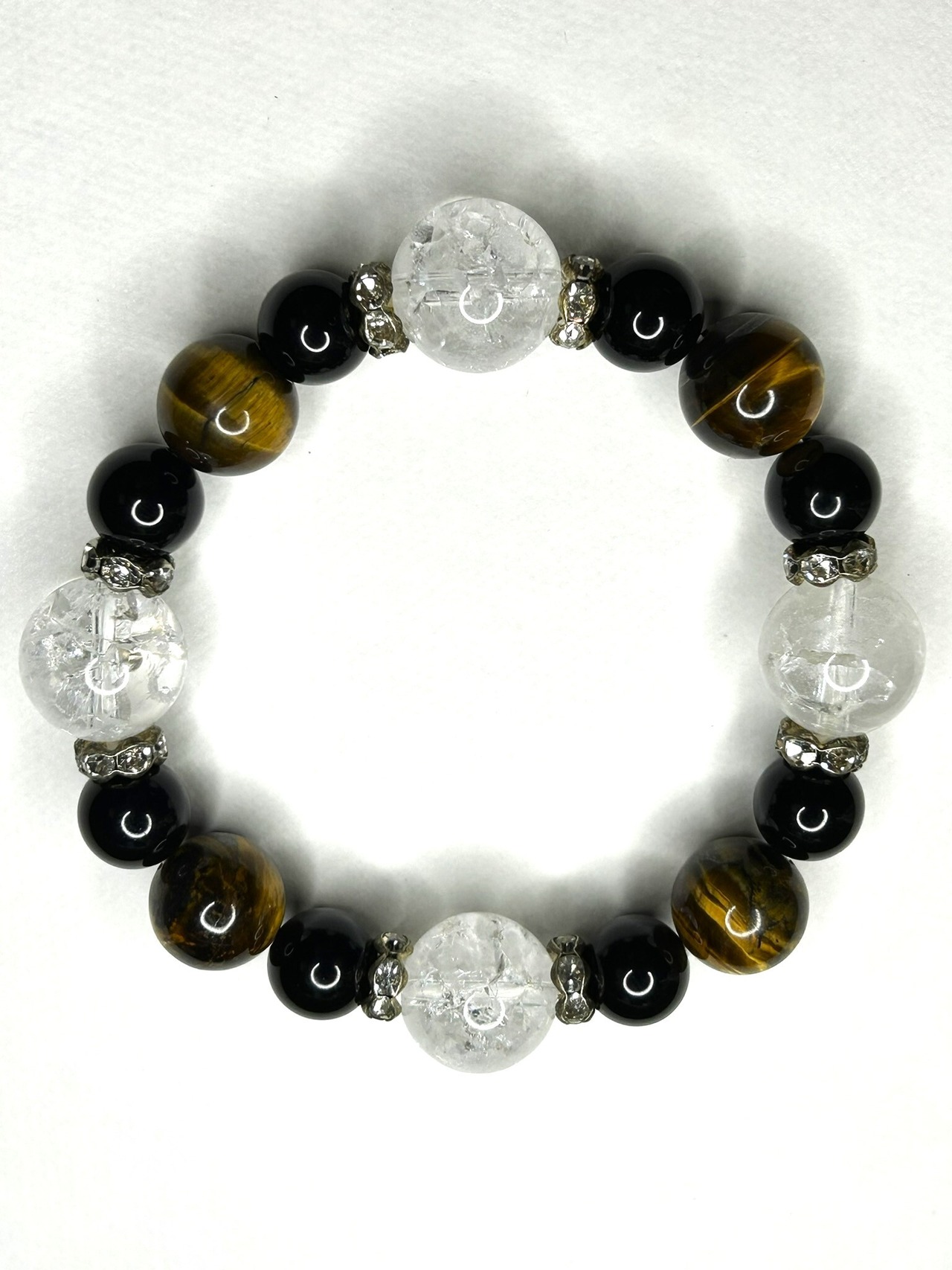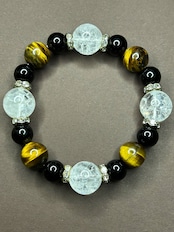 クラック水晶×タイガーアイ×ブラックオニキス ブレスレット B(波ロンデル)