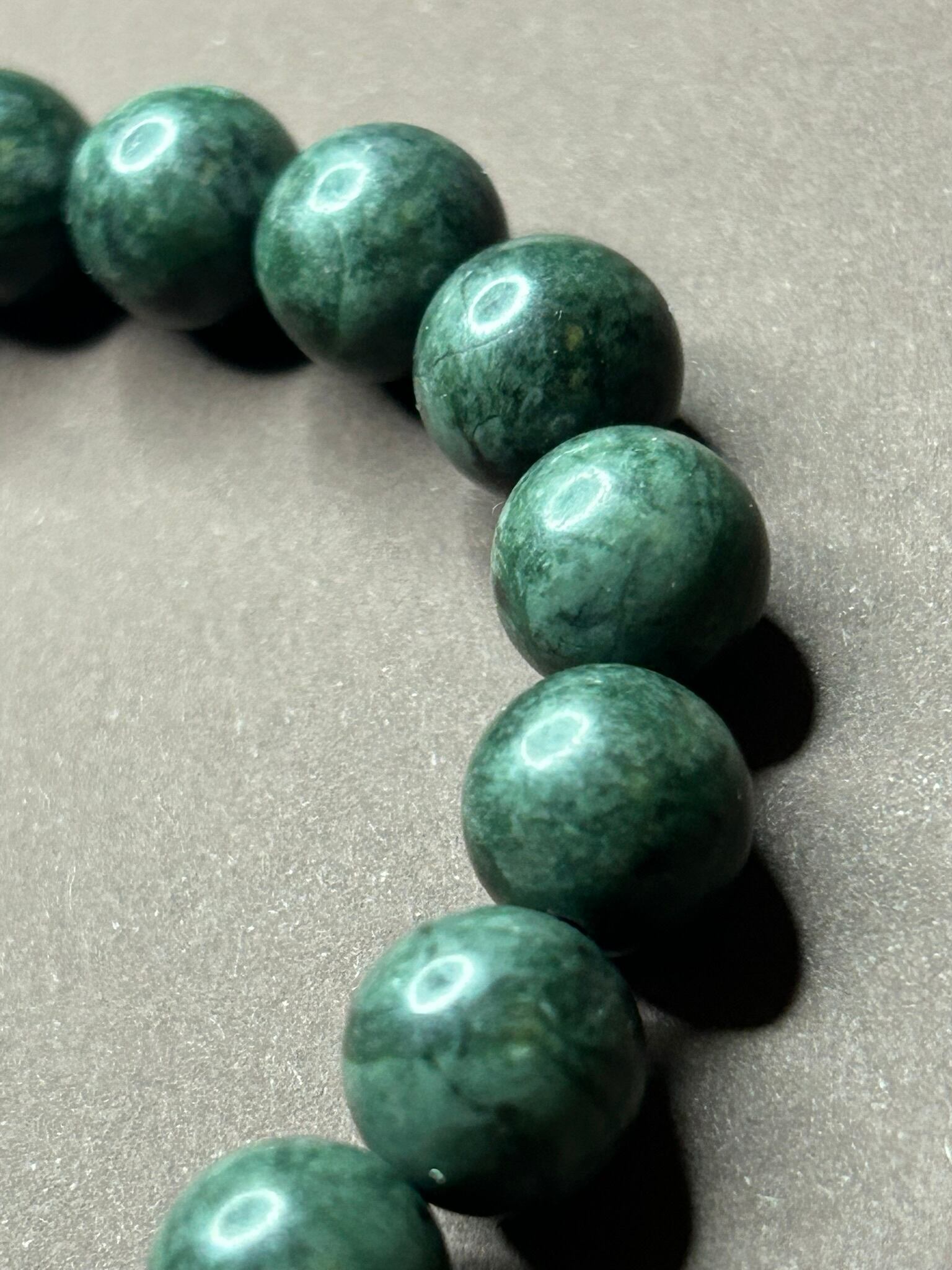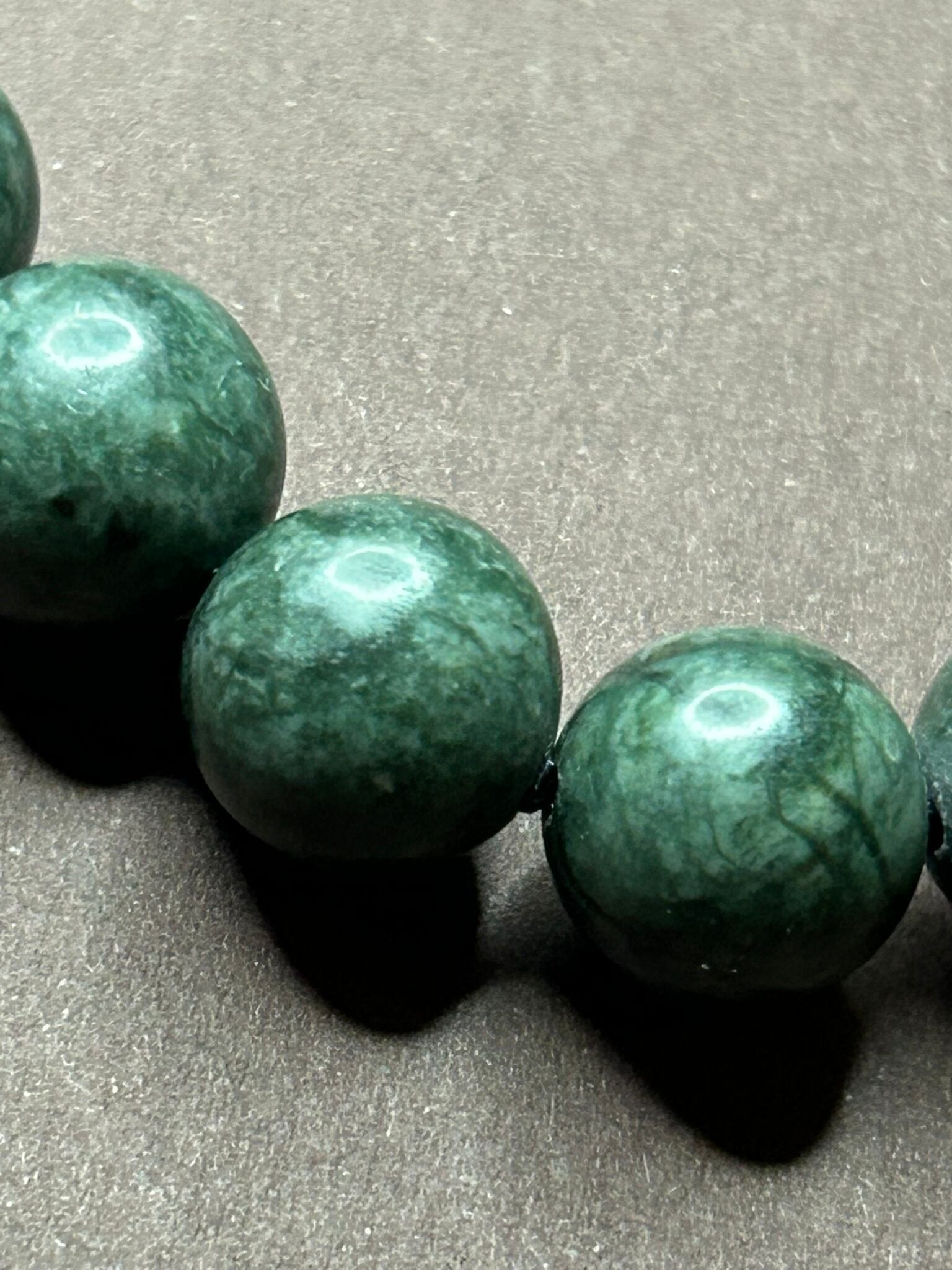 ブラックネフライトという名称ですが、黒いというよりはどちらかというと「黒い成分が多く含まれる」ネフライトととらえていただければイメージが付きやすいかと思います。