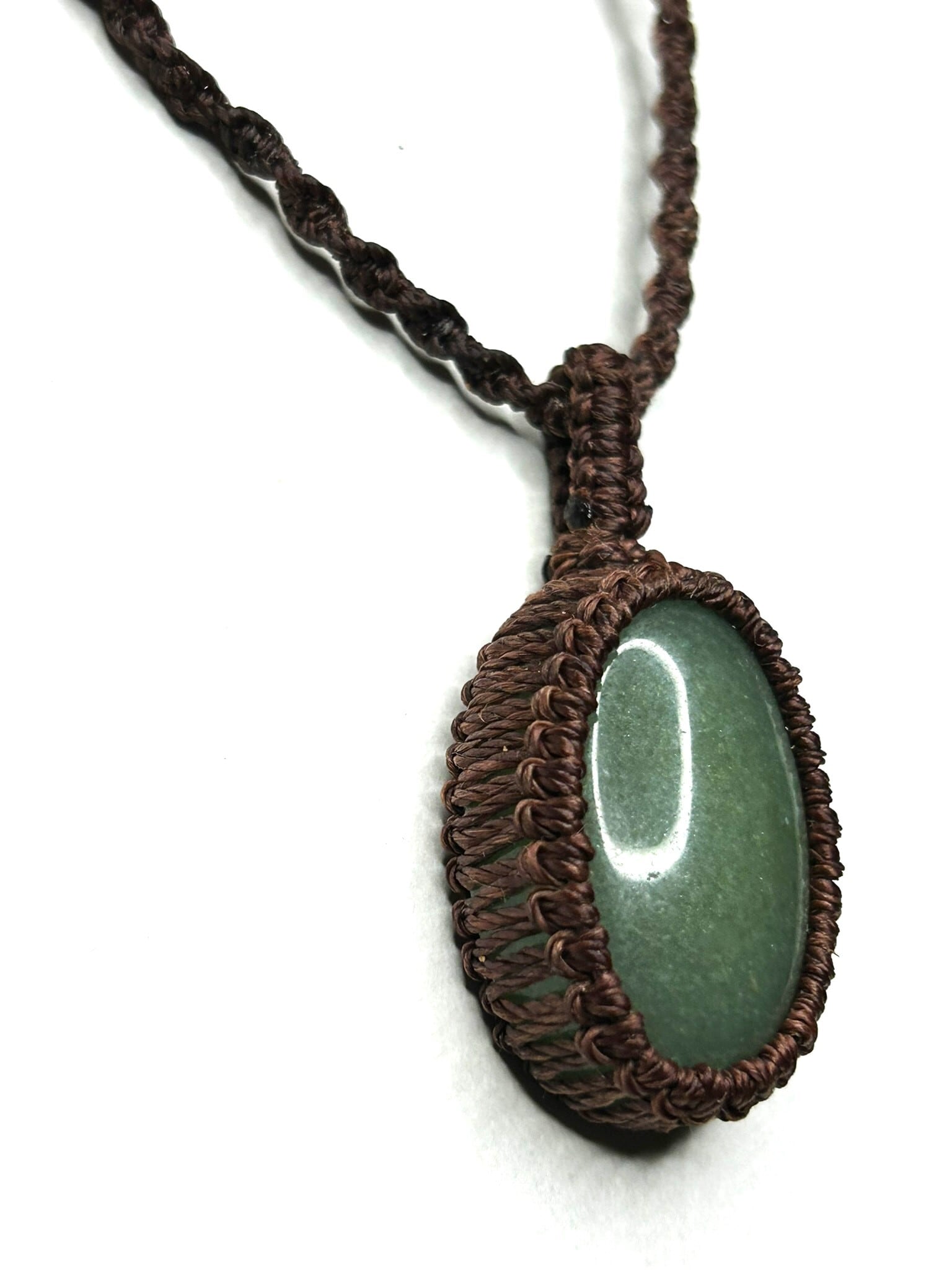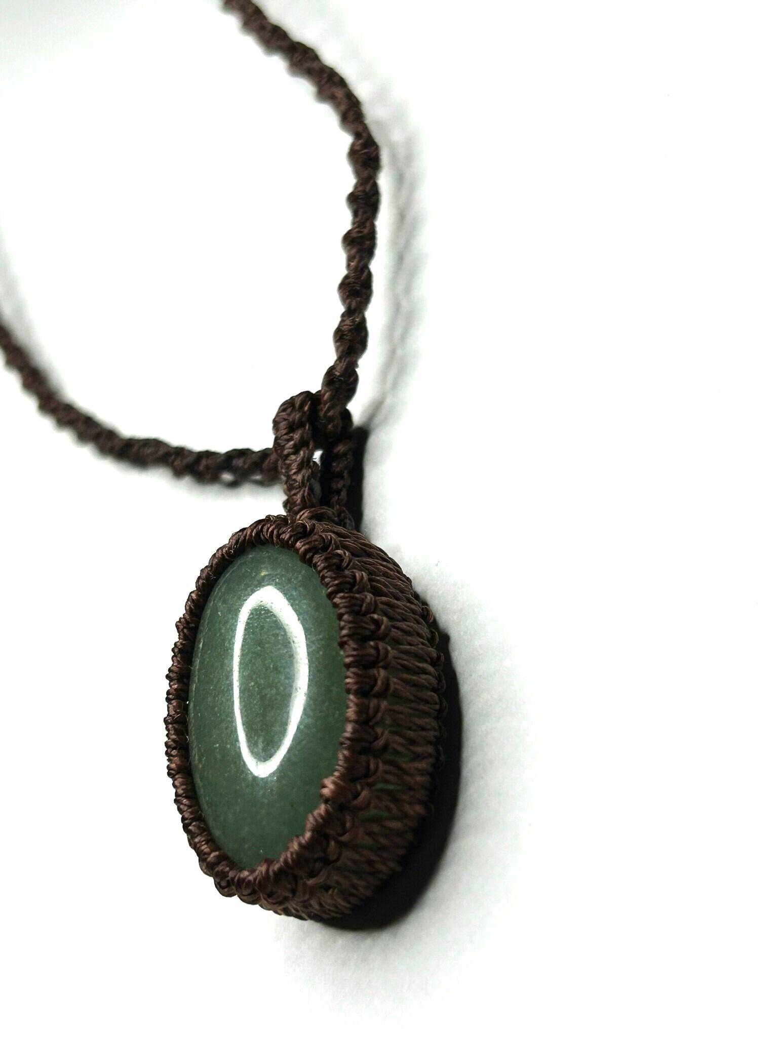 グリーンアベンチュリンのカボションをマクラメでペンダントにしました。