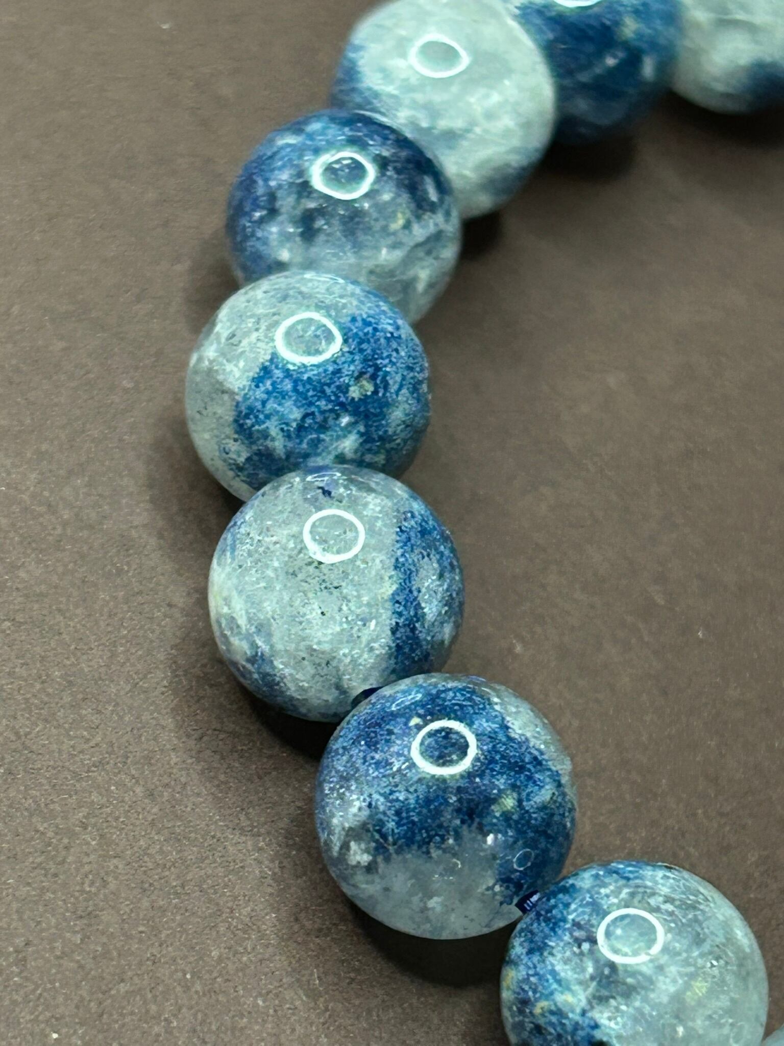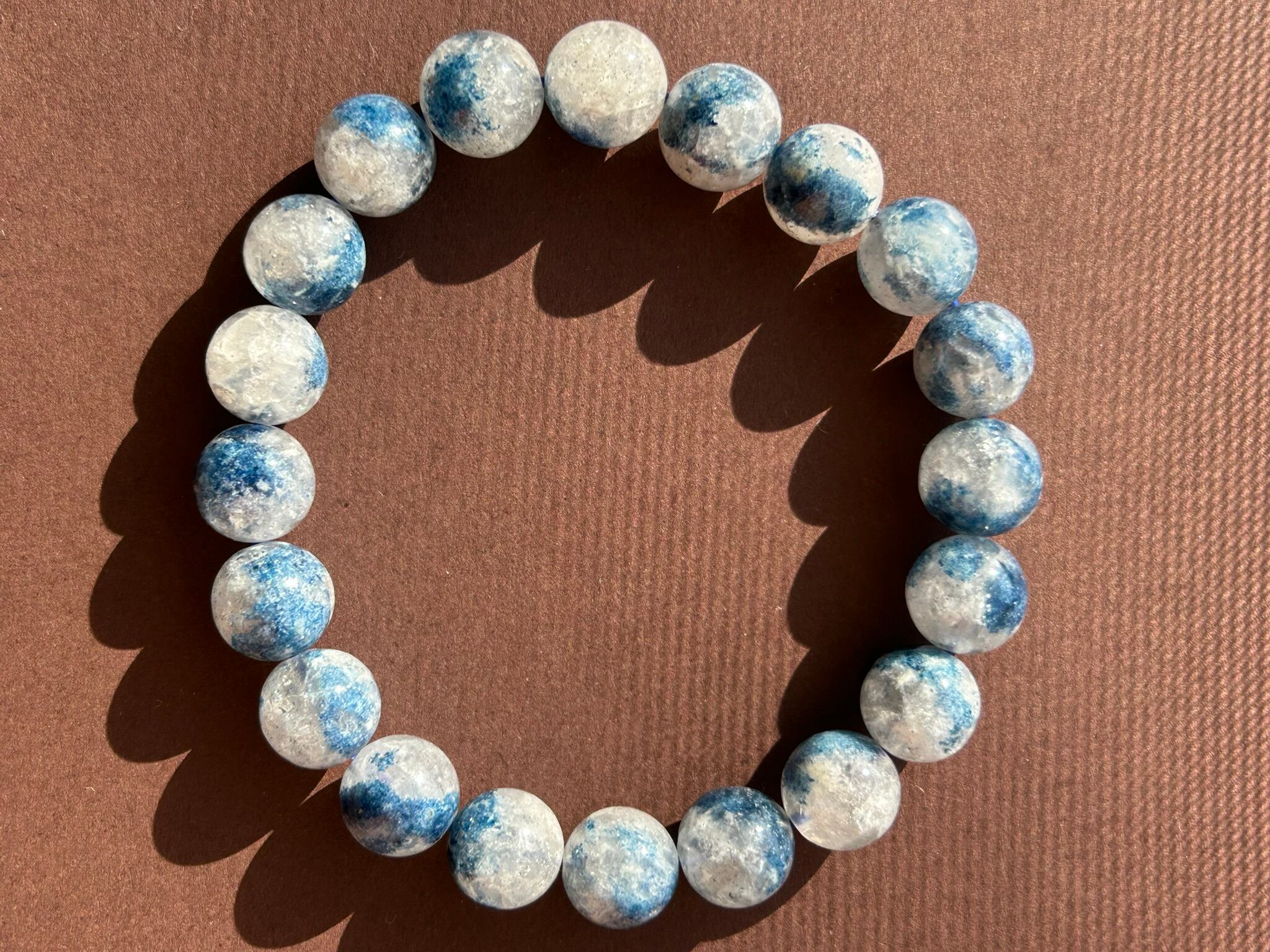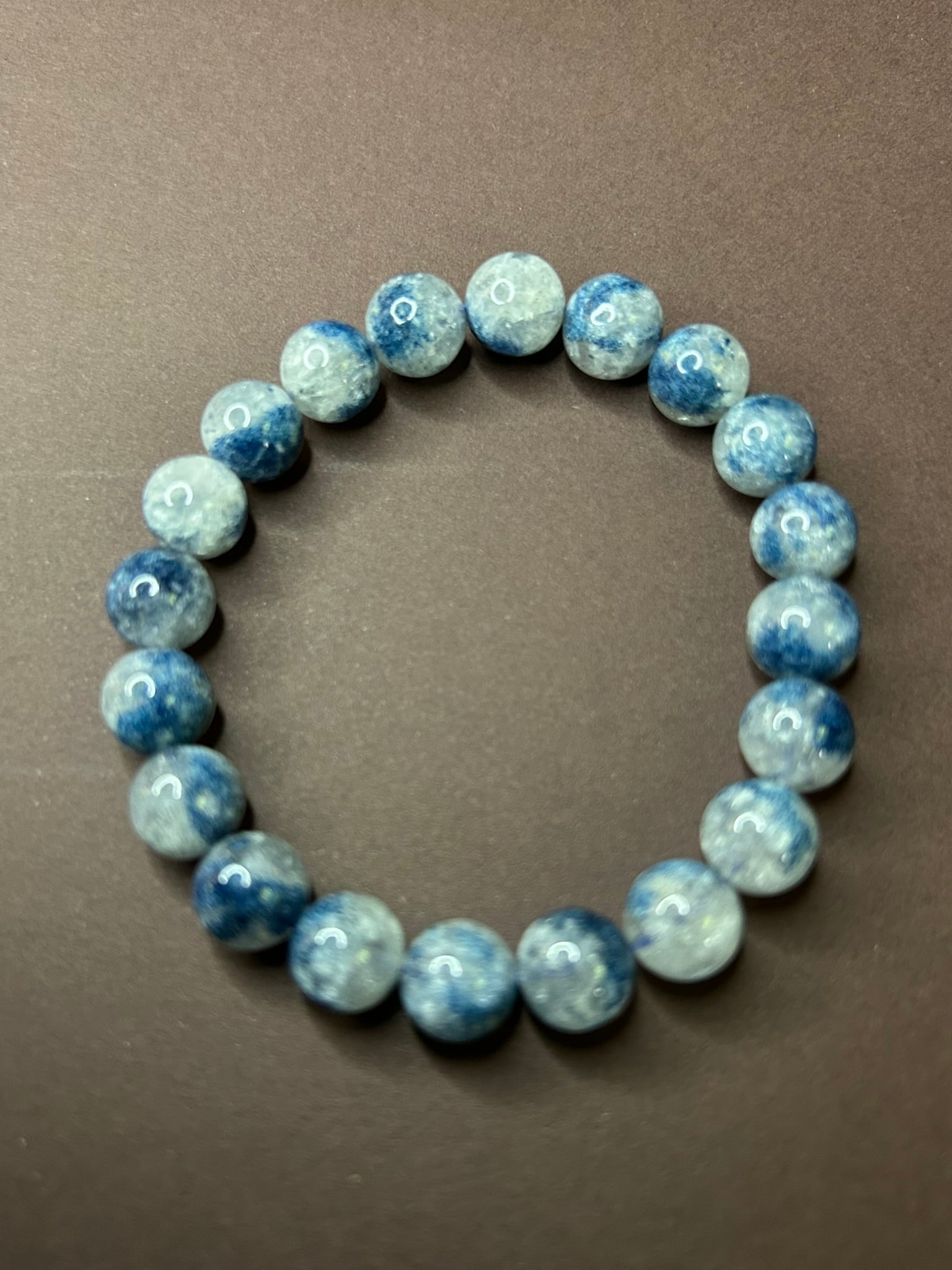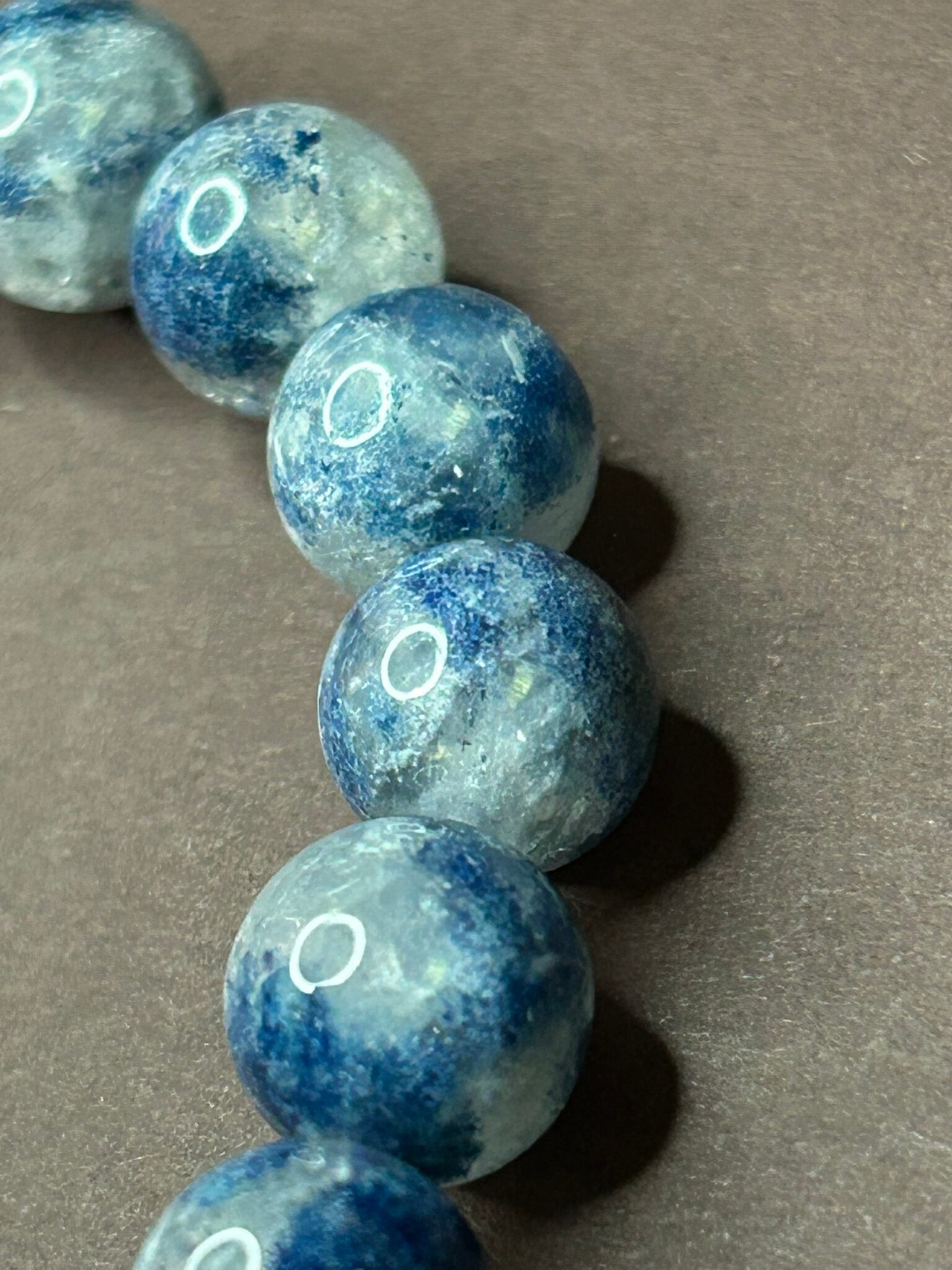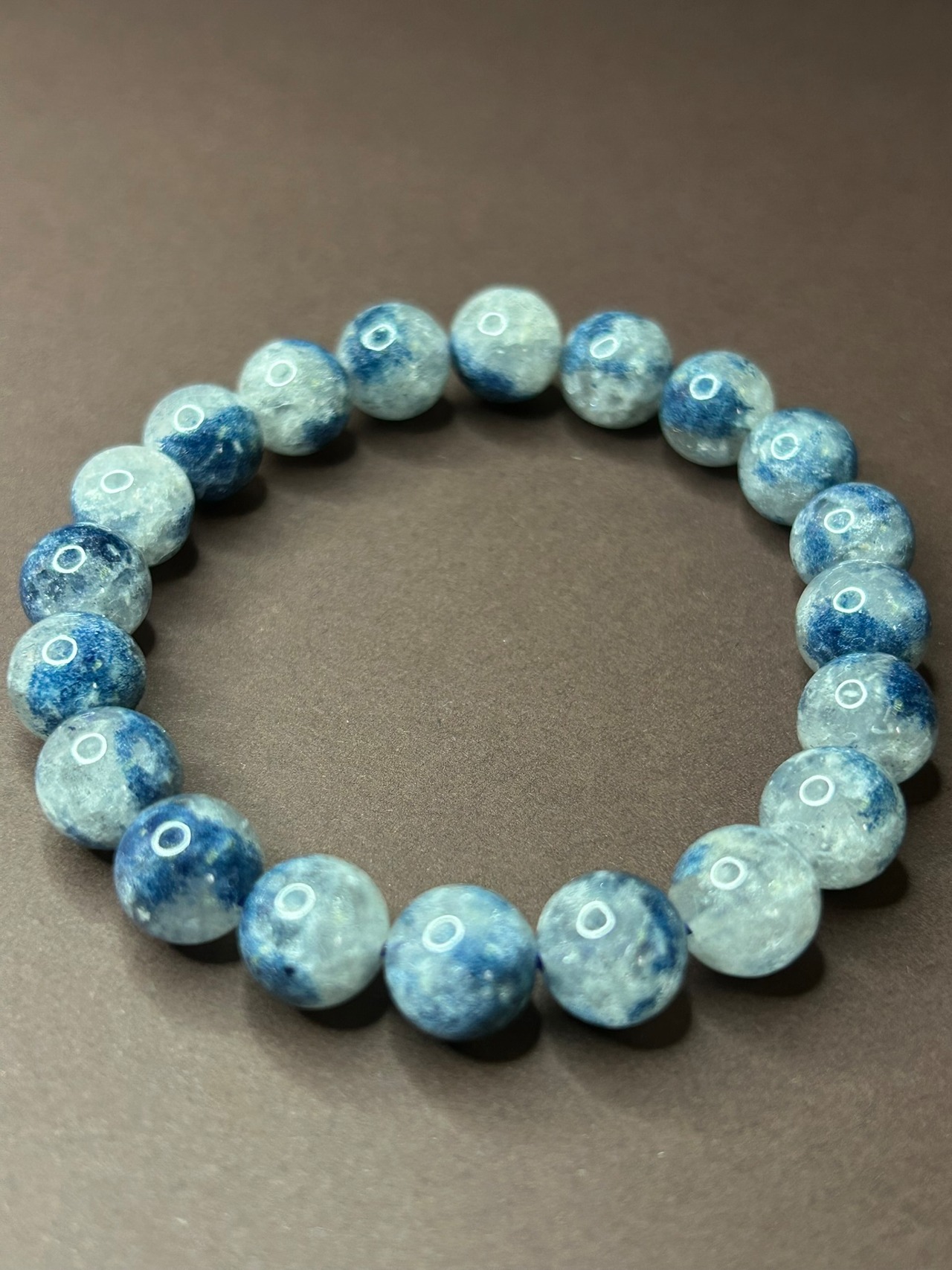 深いブルーが美しく広がる、スコルザライトインクォーツのブレスレットです。