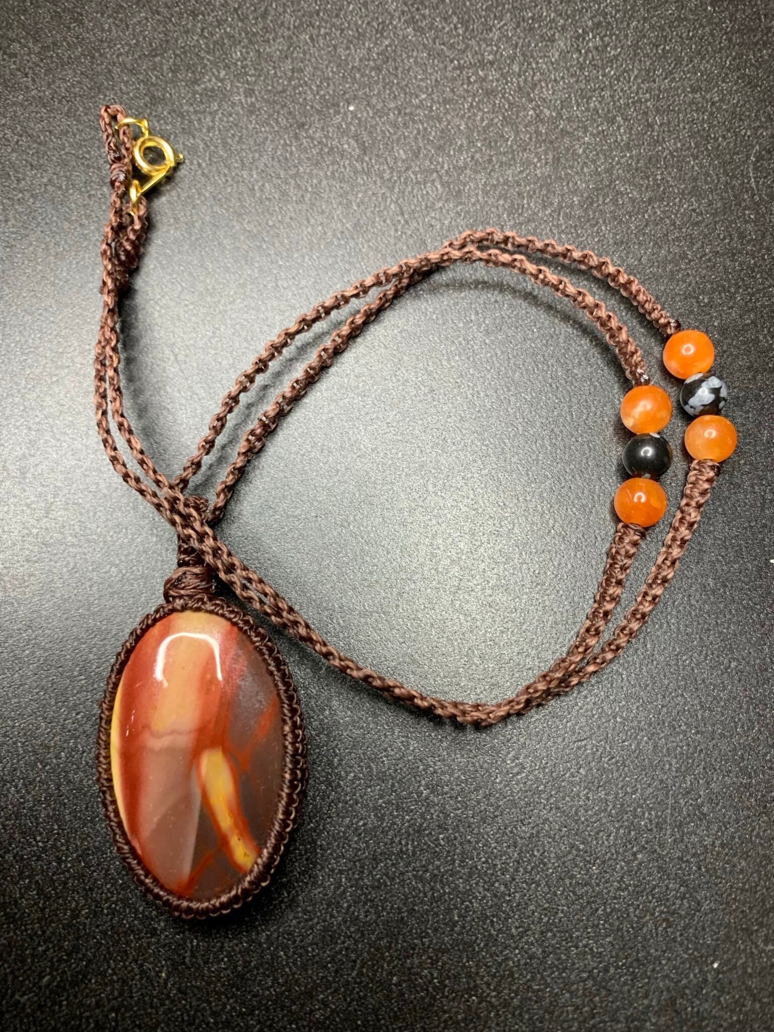 ジャスパーの一種であるモッカイトは入り組んだ色のまじりあいが多いジャスパーの中では、赤、茶、黄色などを主とした色がはっきりと分かれている特徴を持つ天然石です。