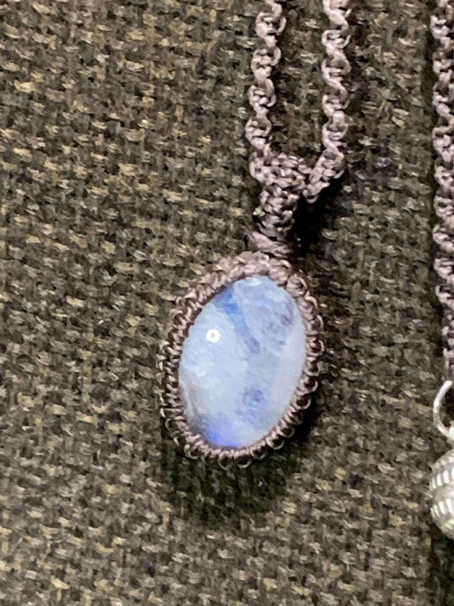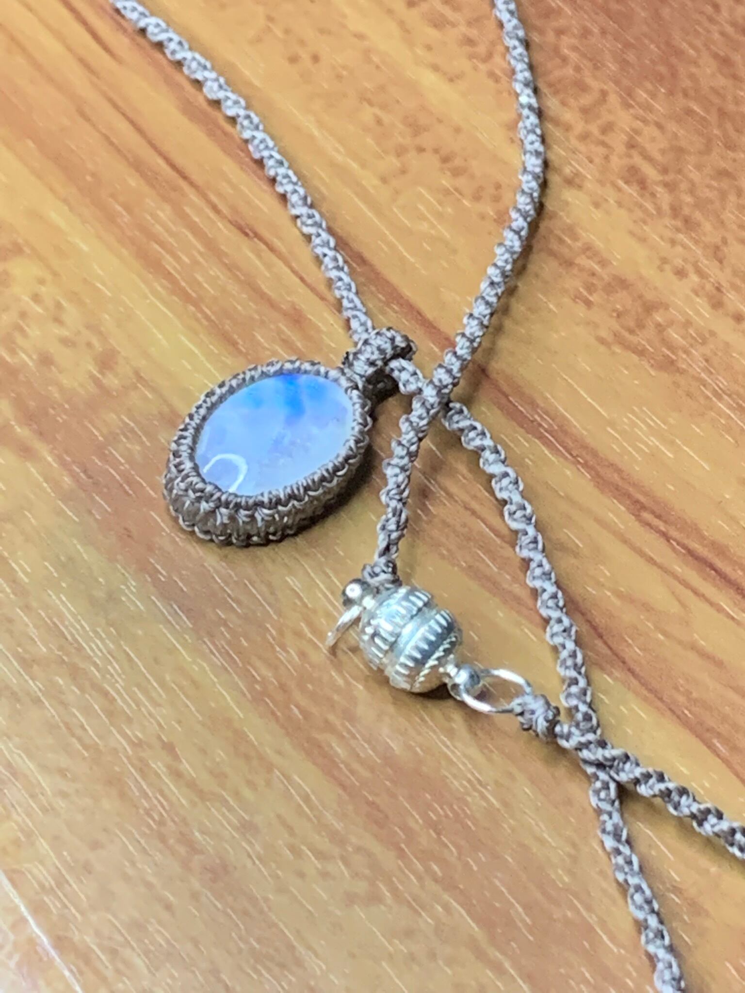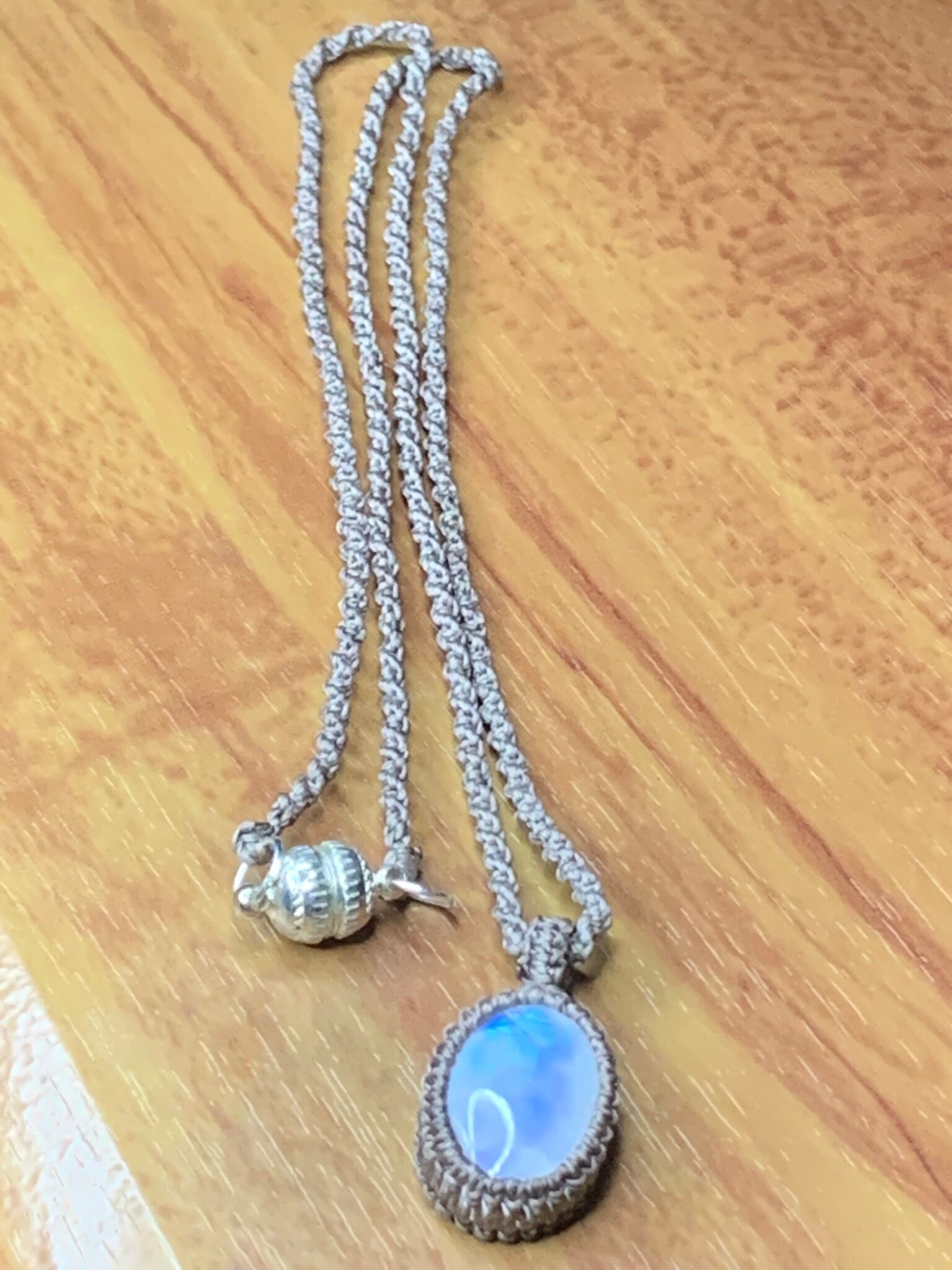 ブルームーンストーンを使用したマクラメ包みのペンダントです。