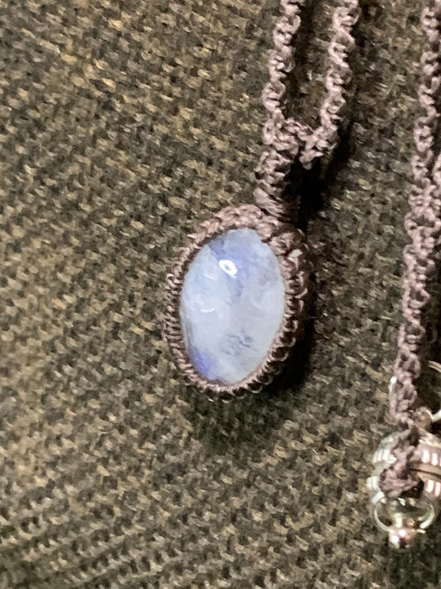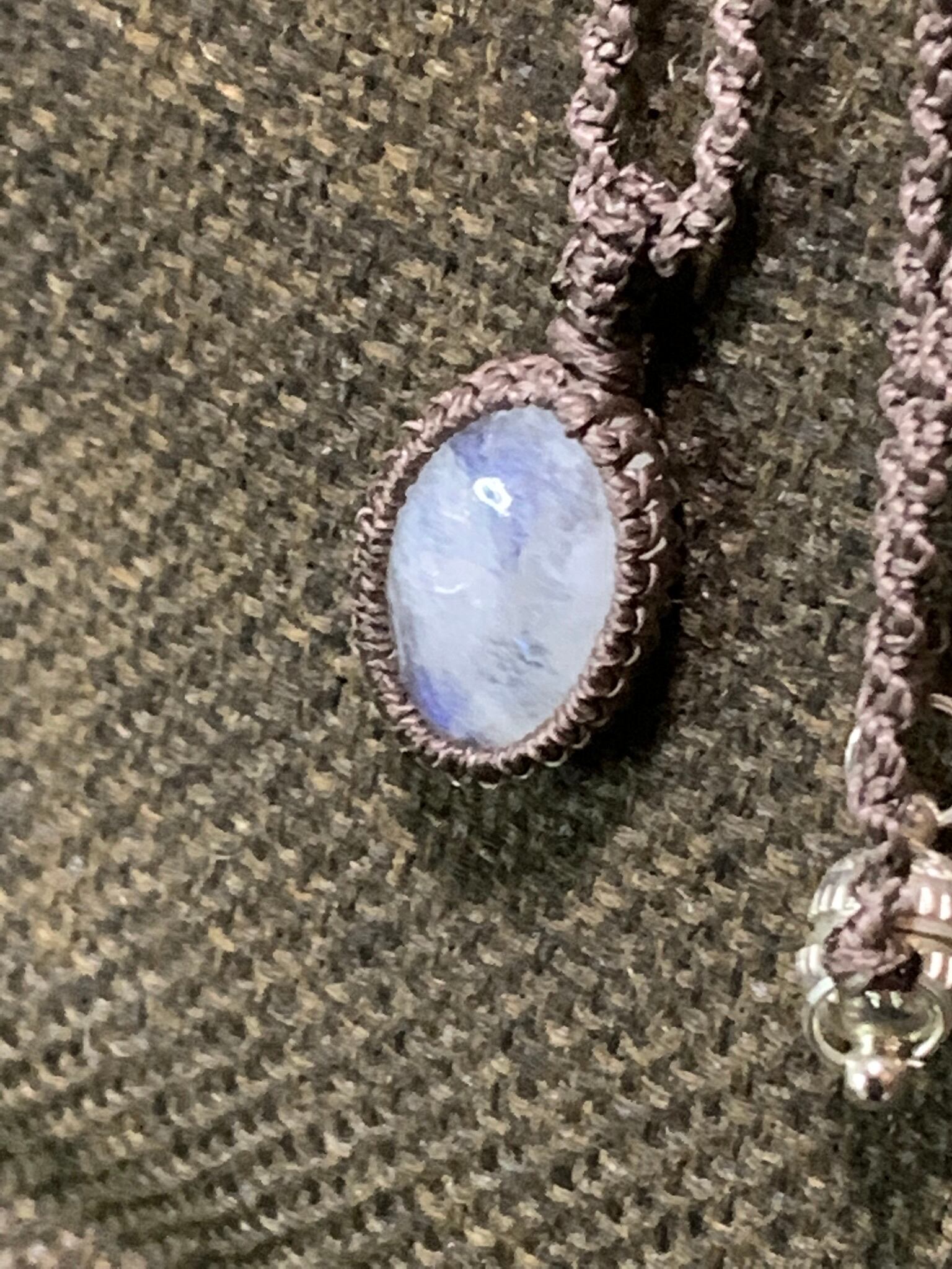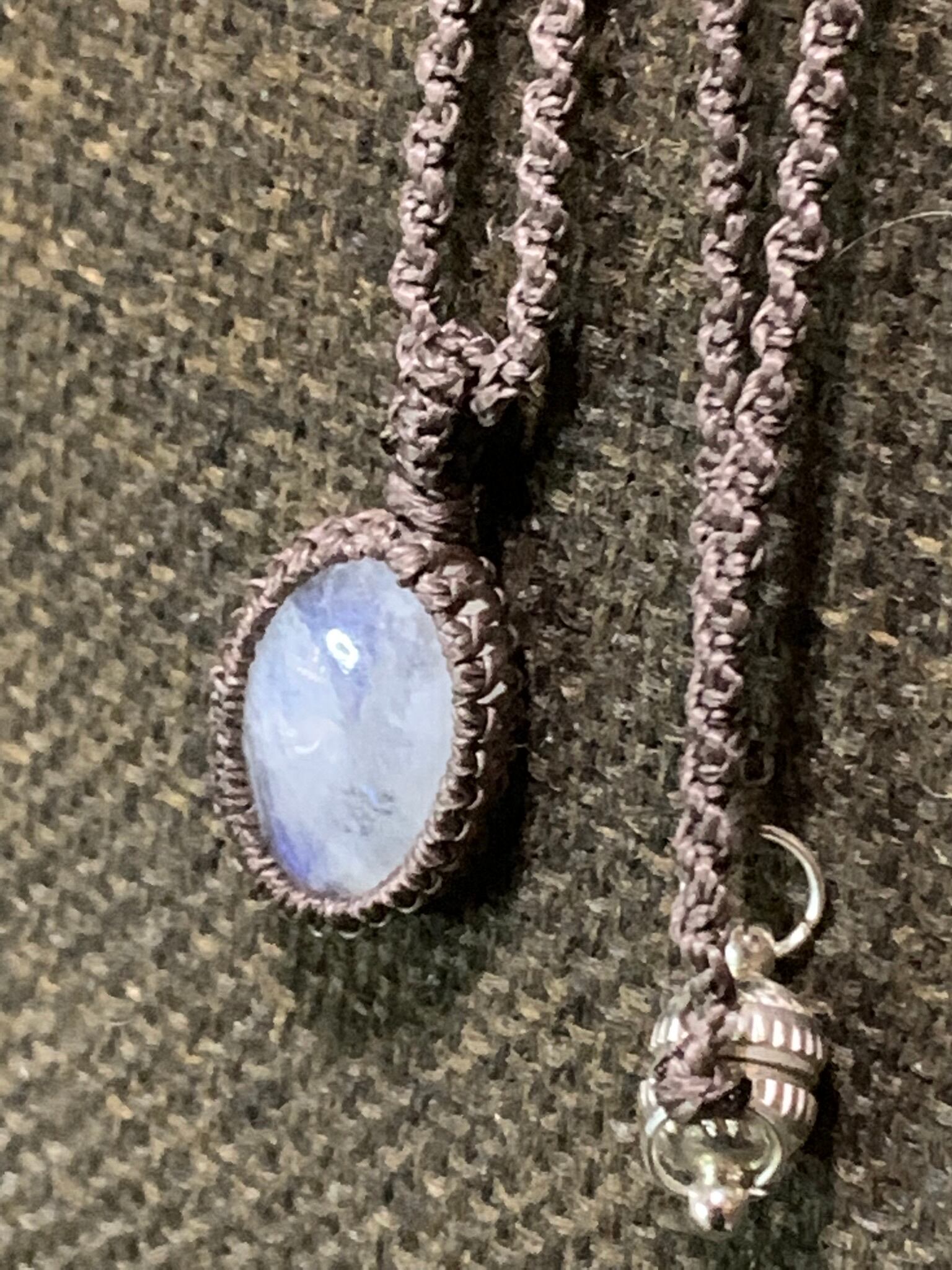 ブルームーンストーンを使用したマクラメ包みのペンダントです。