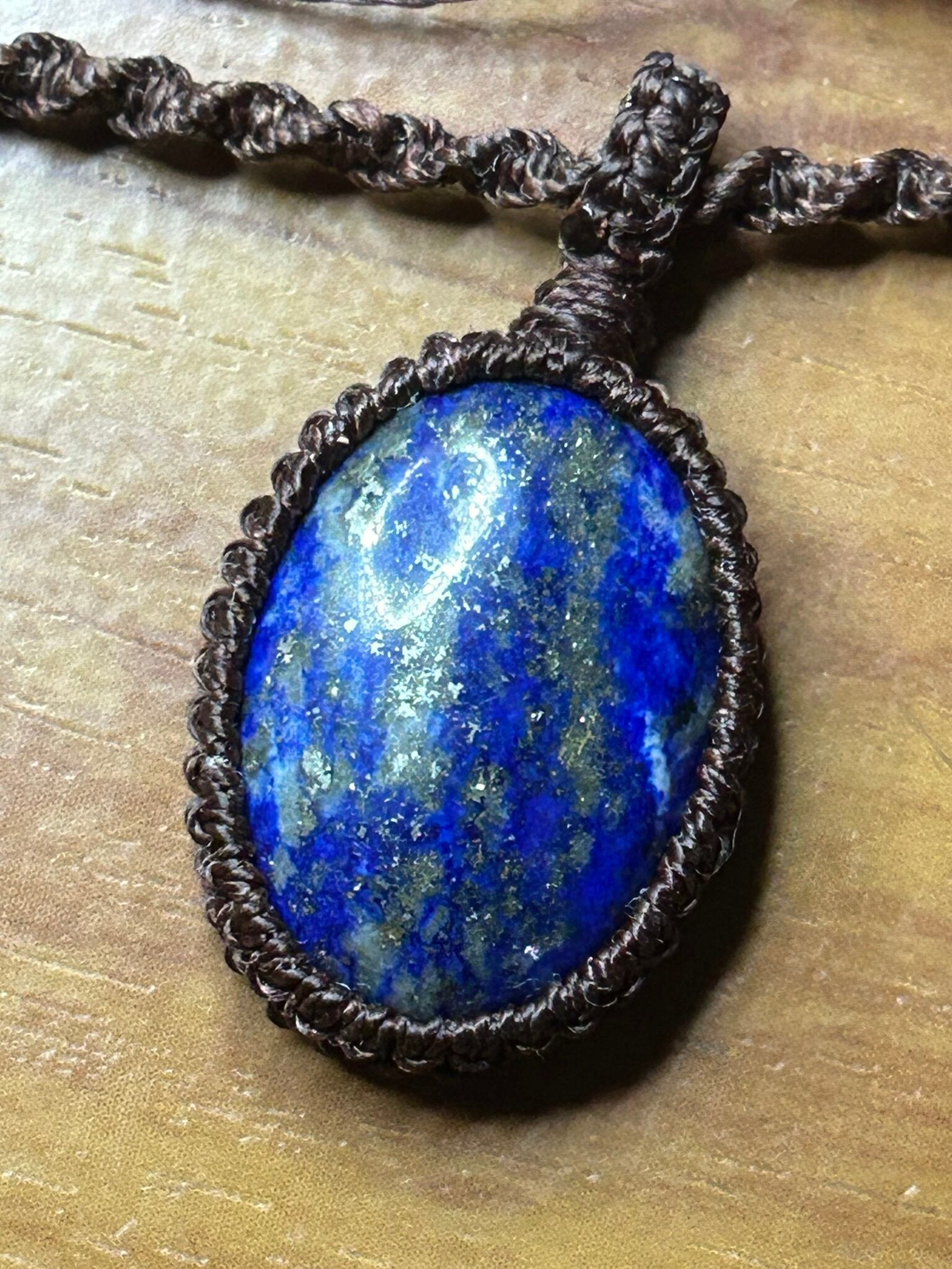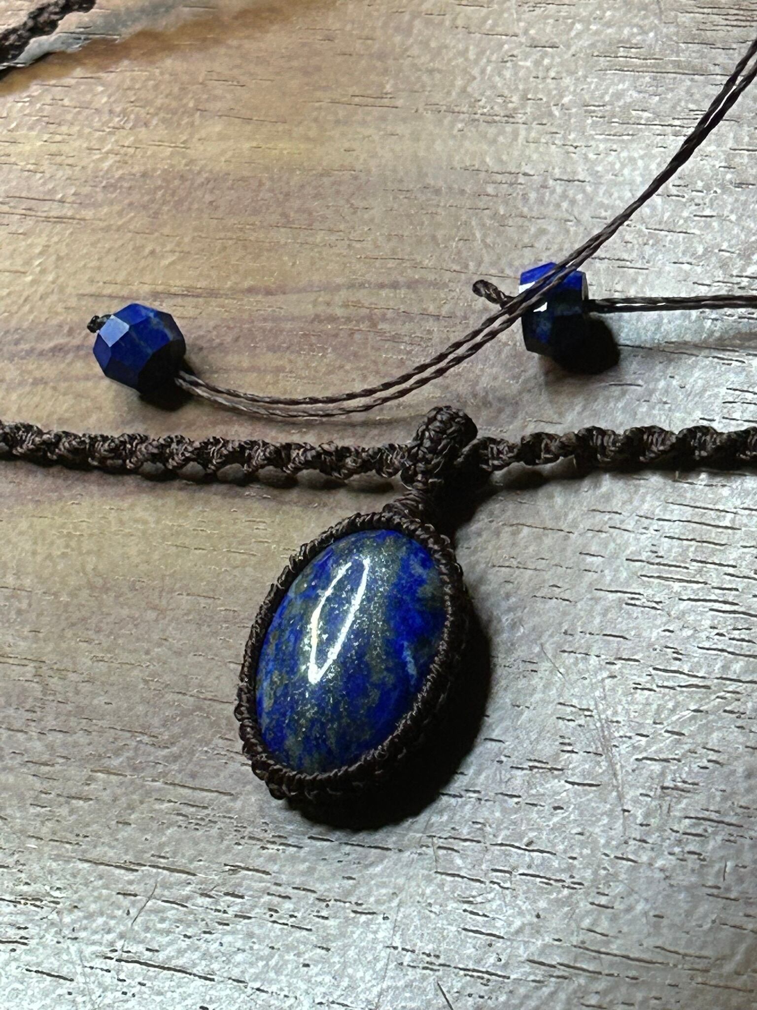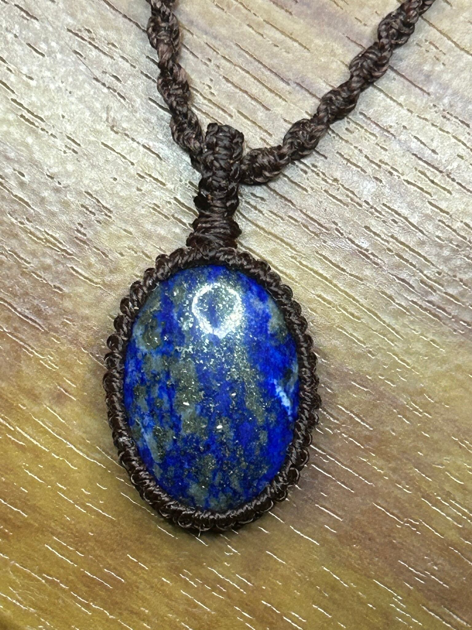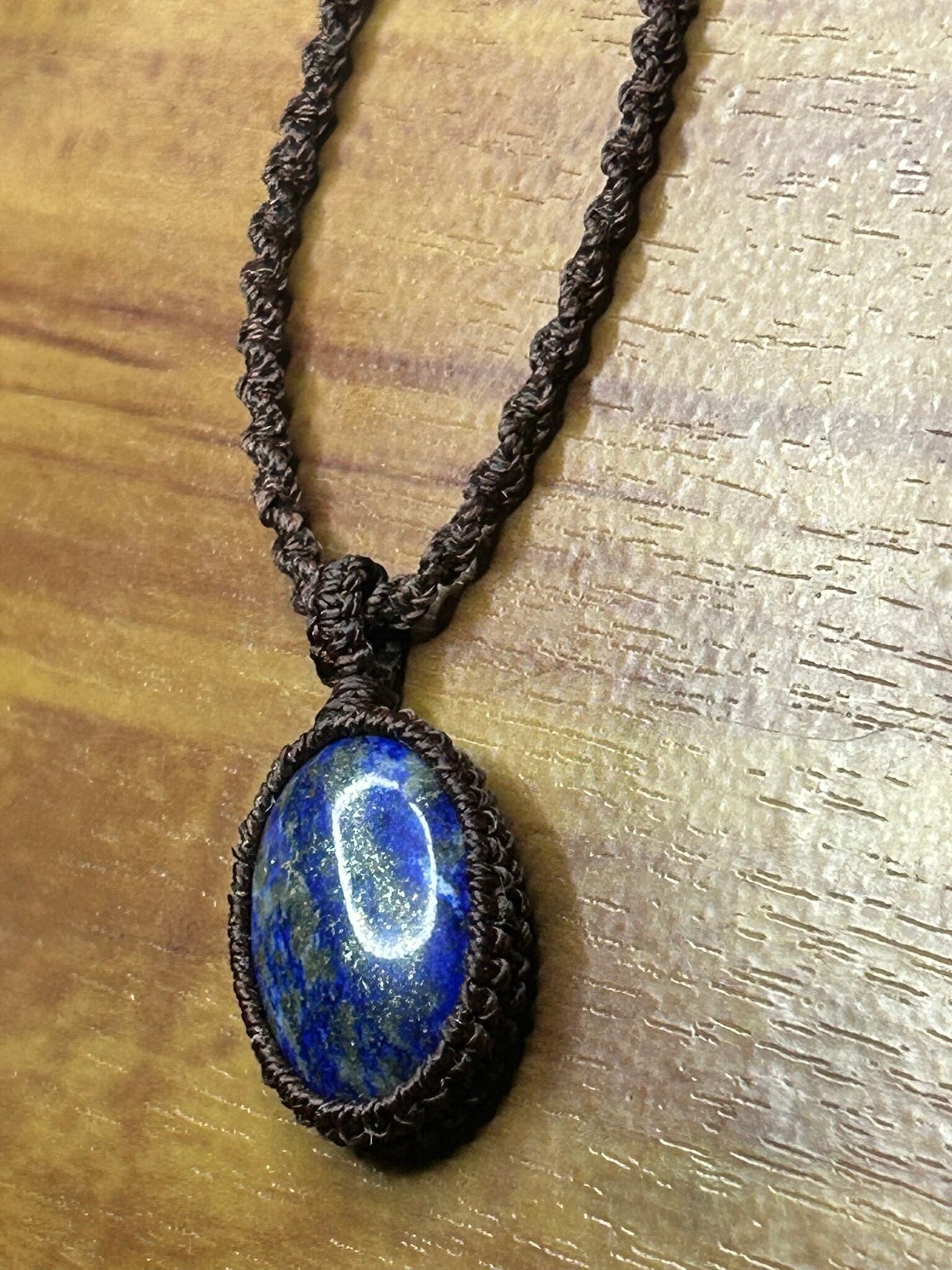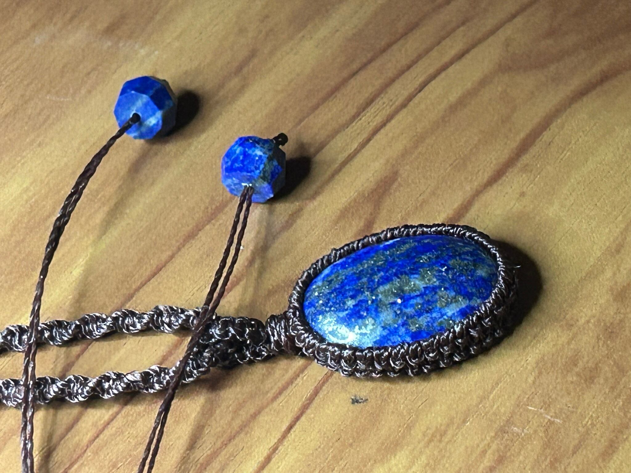 ラピスラズリのカボションをマクラメでペンダントにしました。