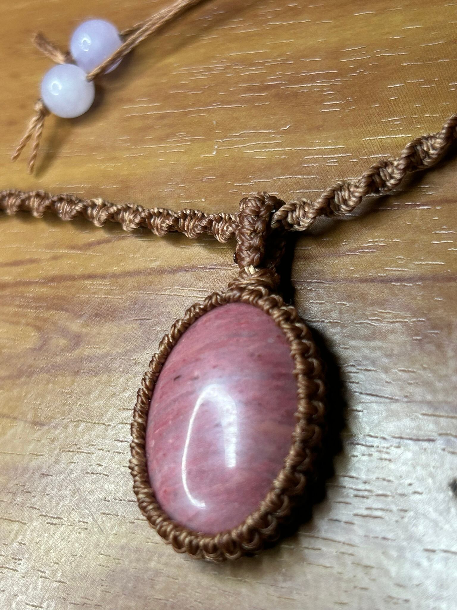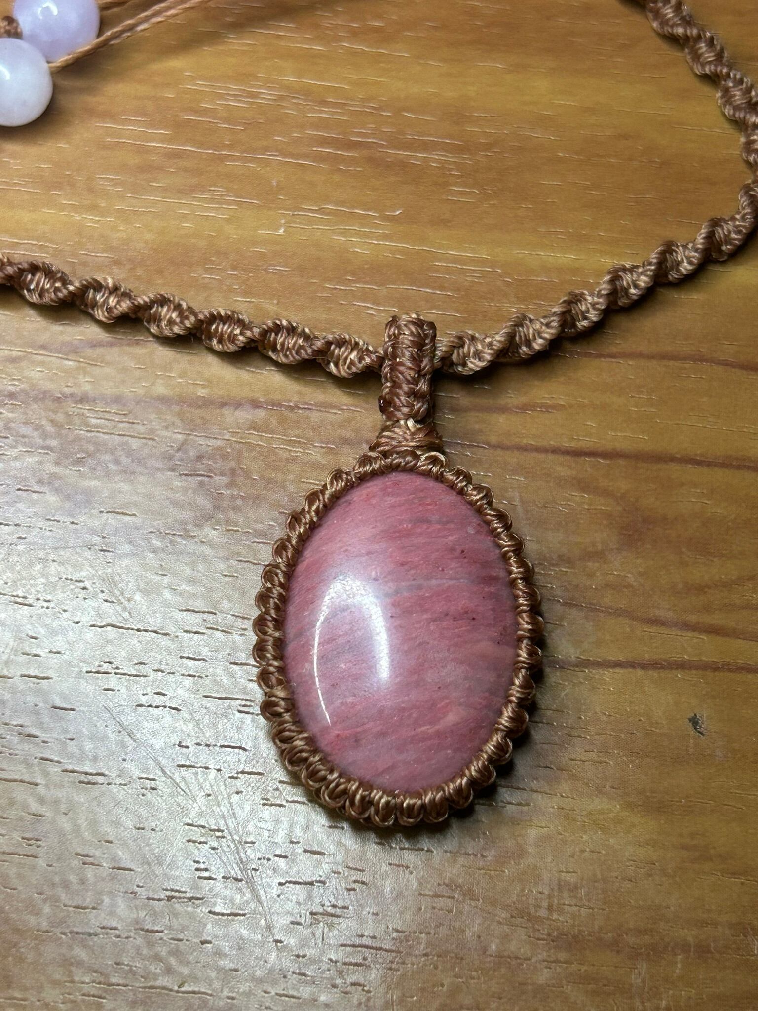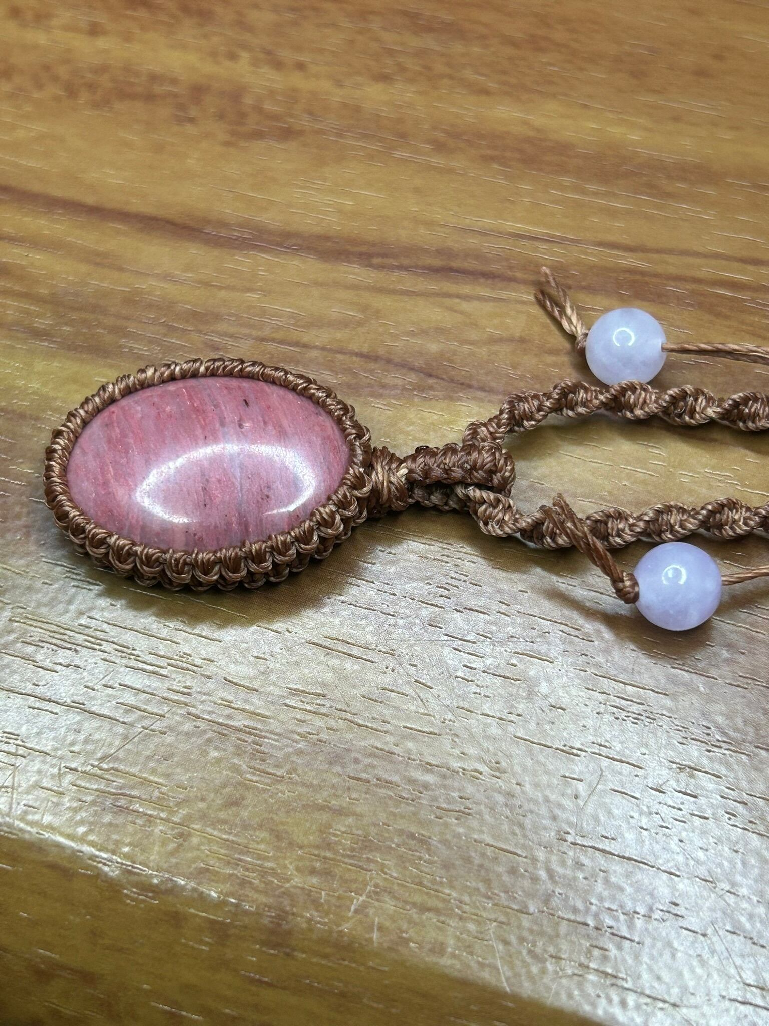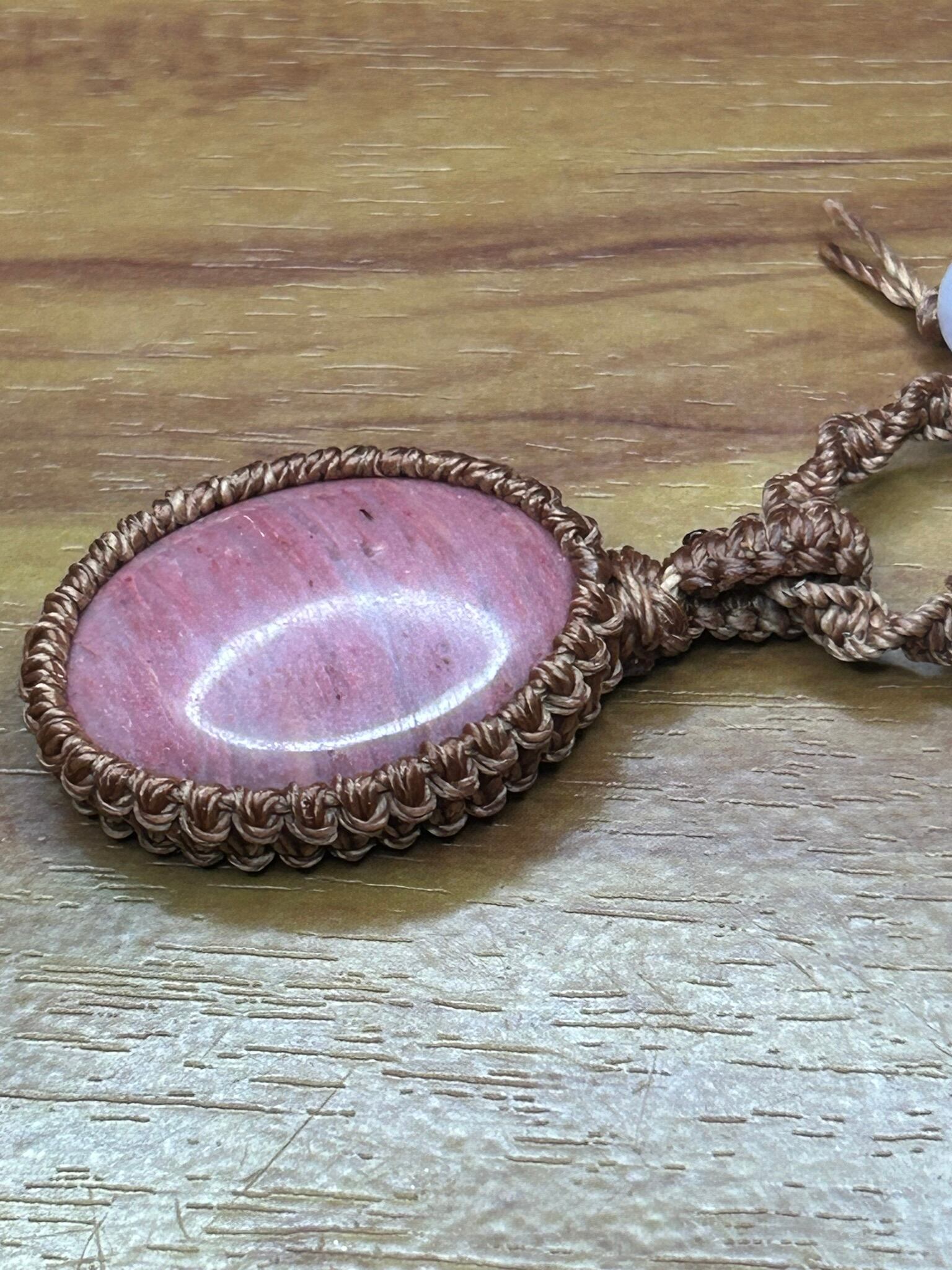 シリシャスシストのカボションをマクラメでペンダントにしました。