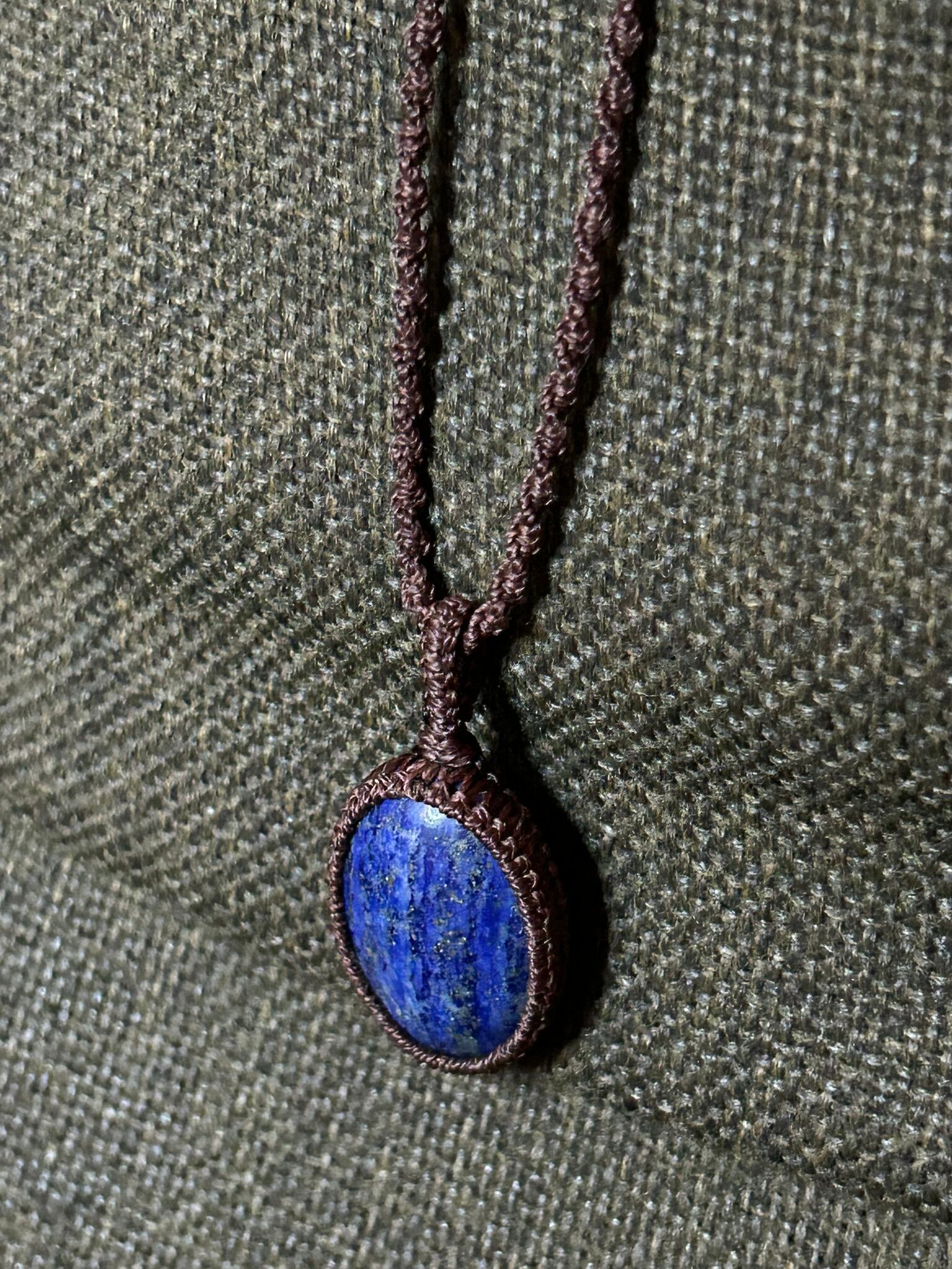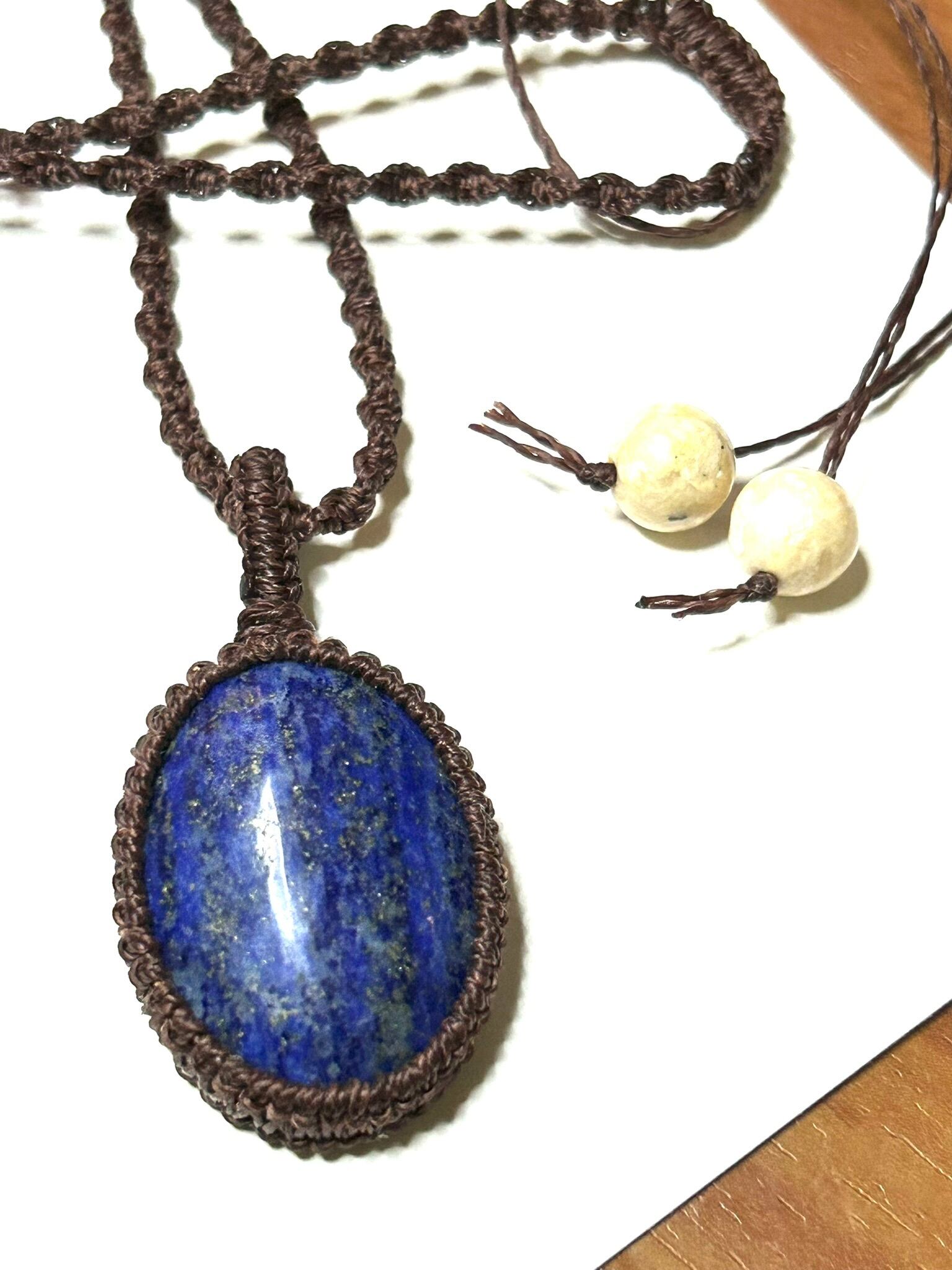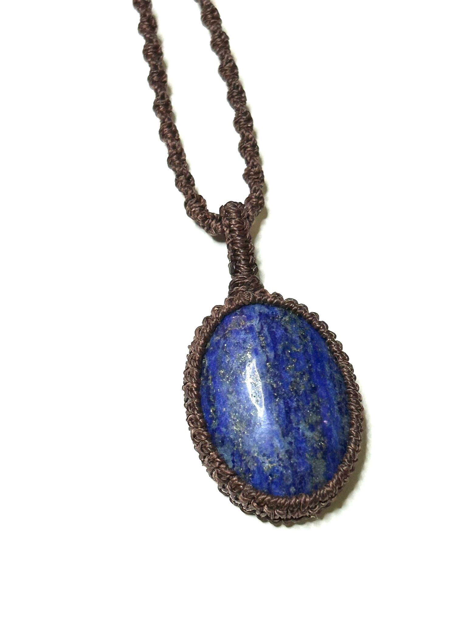 ラピスラズリのカボションをマクラメでペンダントにしました。