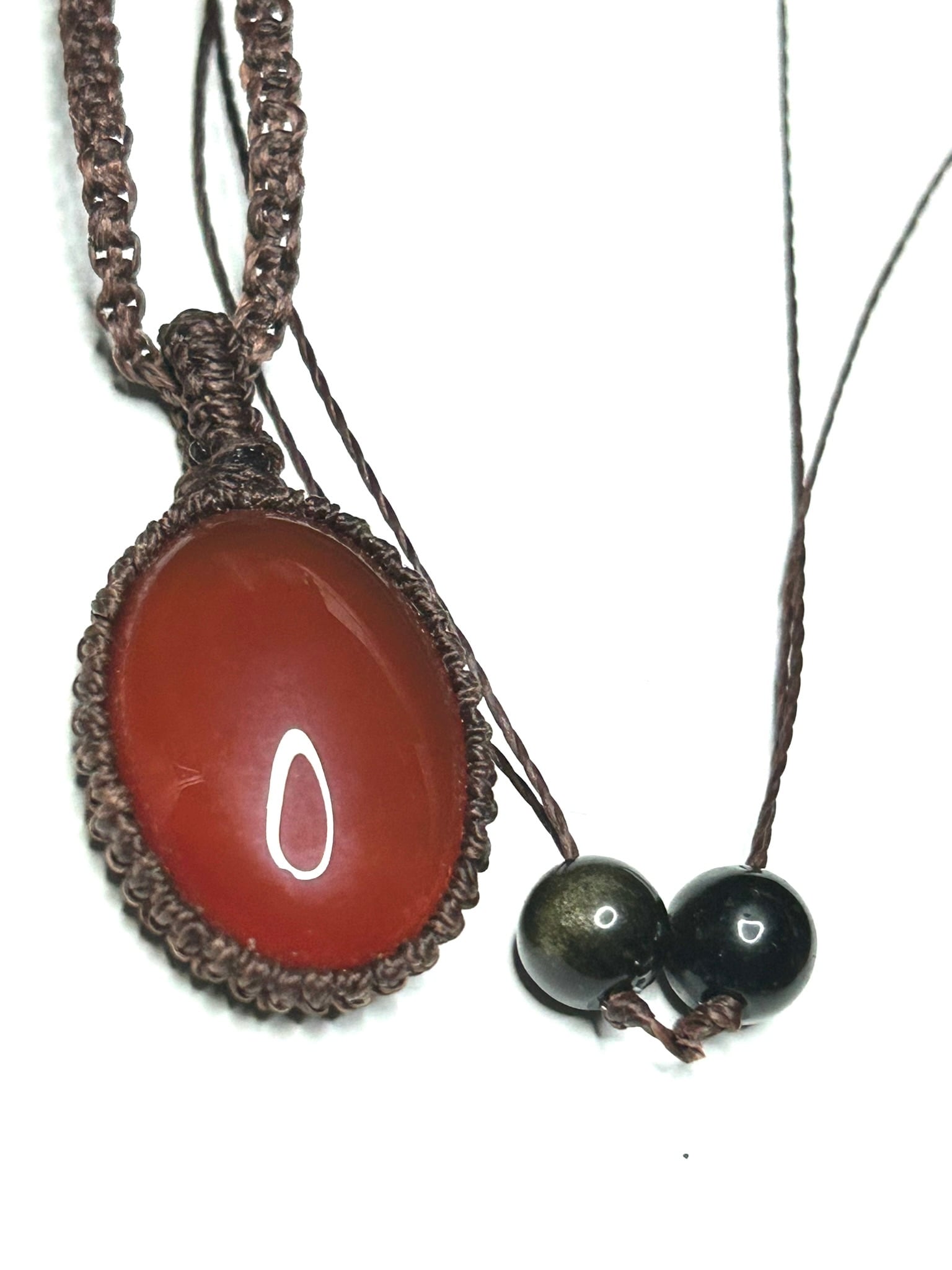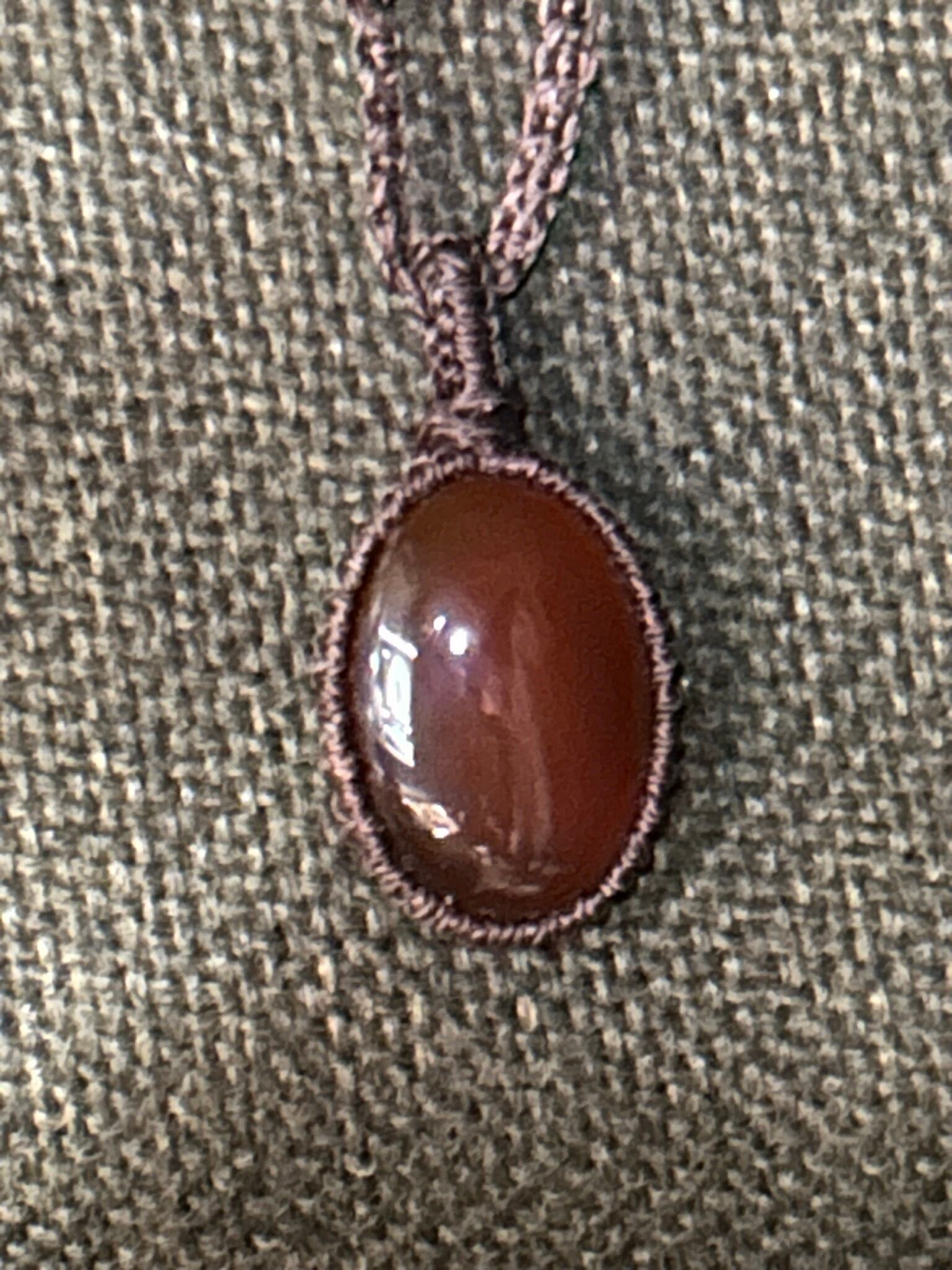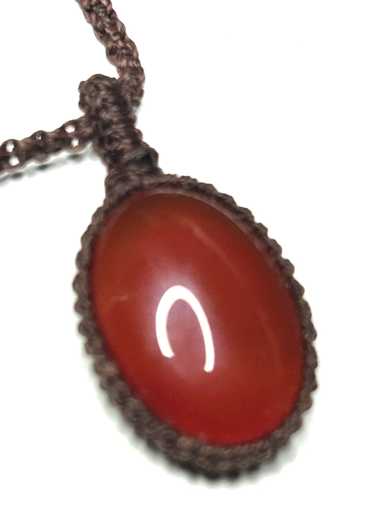 レッドアゲートのオーバルカボションを使用したマクラメペンダントです。